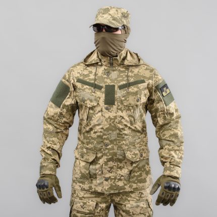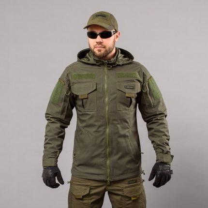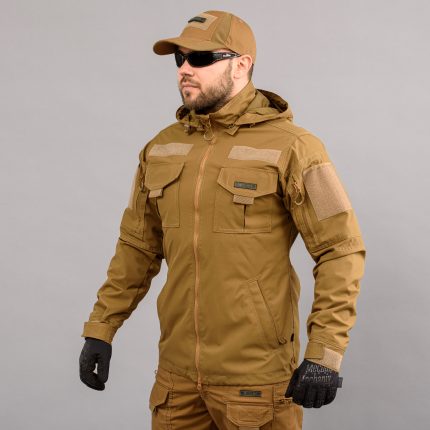 Тактичний функціонал: анатомічний крій, капюшон, регульовані манжети, утяжки по низу, вентиляційні блискавки, посилені зони й зручні кишені для документів, рук і дрібного спорядження.