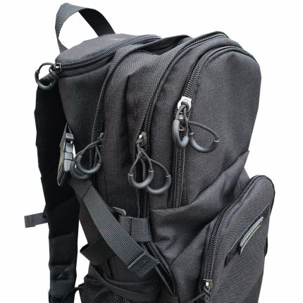 Організація: кілька відділень, адміністративні панелі, стяжки, бокові й приховані кишені, відсік під гідросистему, можливість стиснути або розширити об’єм компресійними ременями.