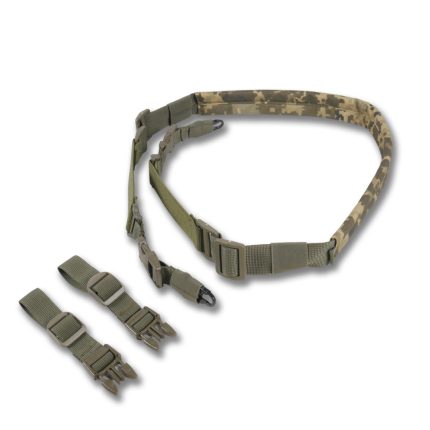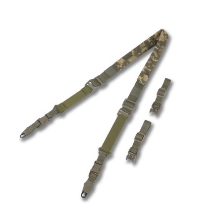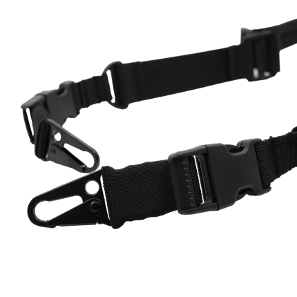 Двоточкові ремені: фіксуються на прикладі та передній частині цівки, краще розподіляють вагу, стабілізують зброю при ходьбі й дозволяють використовувати ремінь як опору під час прицільної стрільби.