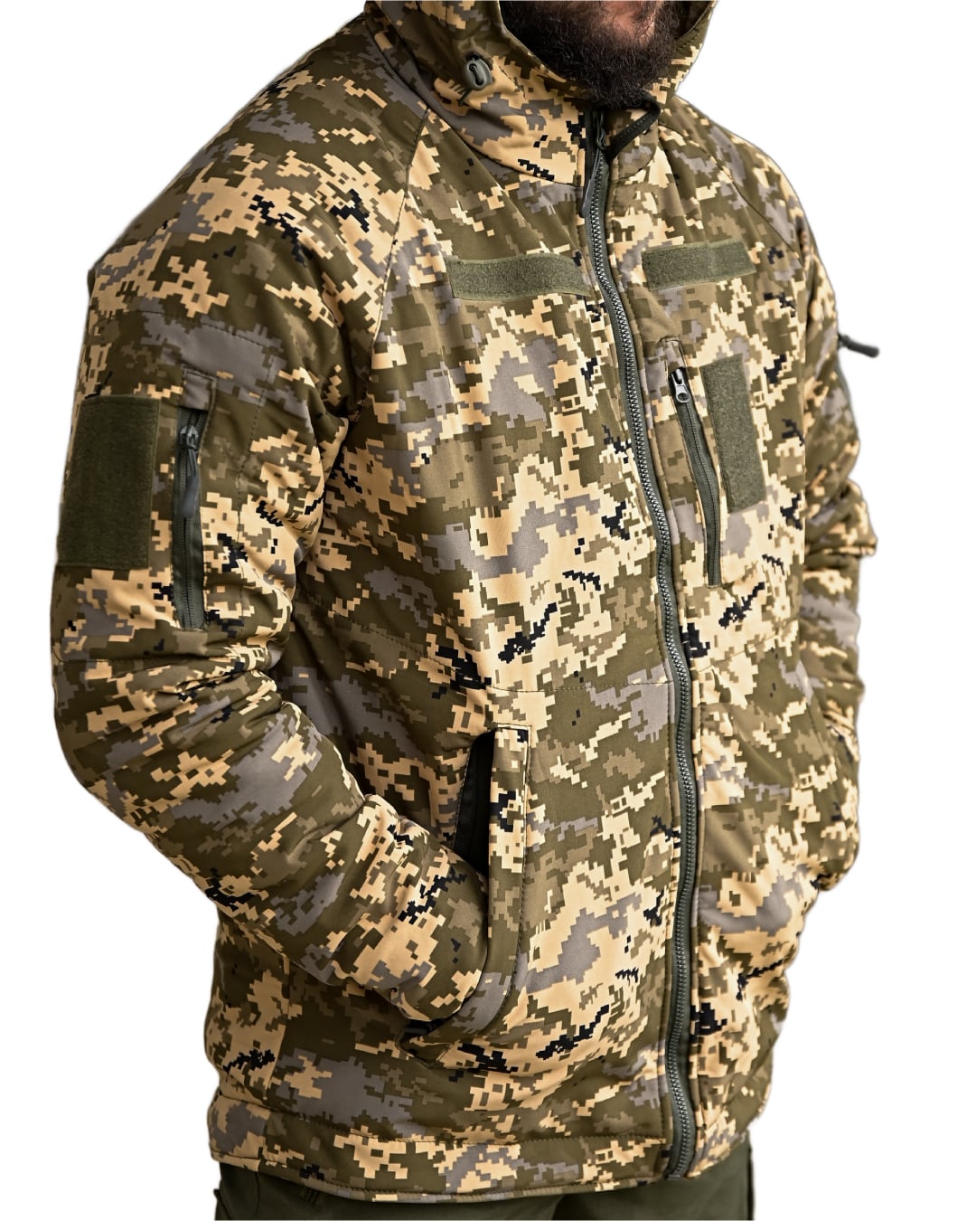 Підкладка Omni-Heat допомагає зберігати тепло, а утеплювач синтепон 150 створює додаткову ізоляцію. Утеплена куртка має адміністративні кишені, липучки під шеврони, універсальний фасон та повномірну розмірну сітку, що спрощує вибір під конкретні параметри.