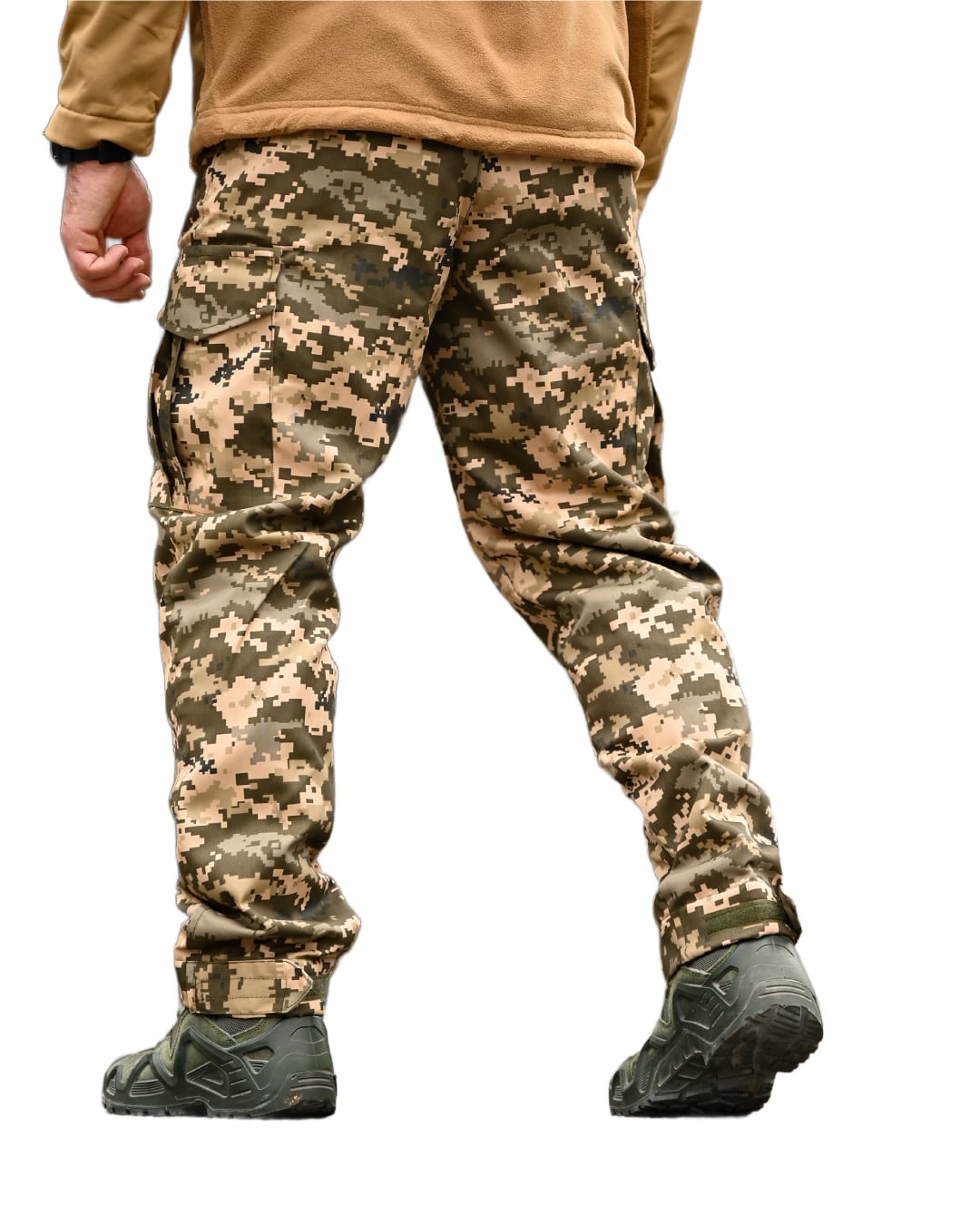 Матеріал саржа не перевантажений додатковими шаром, тому штани залишаються зручними, не обмежують рухів і водночас забезпечують необхідну термоізоляцію завдяки внутрішньому флісу. Камуфляжний малюнок може поєднуватись з більшістю елементів однострою та зимових комплектів, зберігаючи практичність та стриманий зовнішній вигляд.