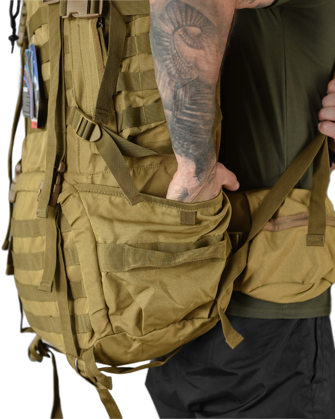 Рюкзак тактичний 100 л. рамний з водонепроникного матеріалу КОЙОТ