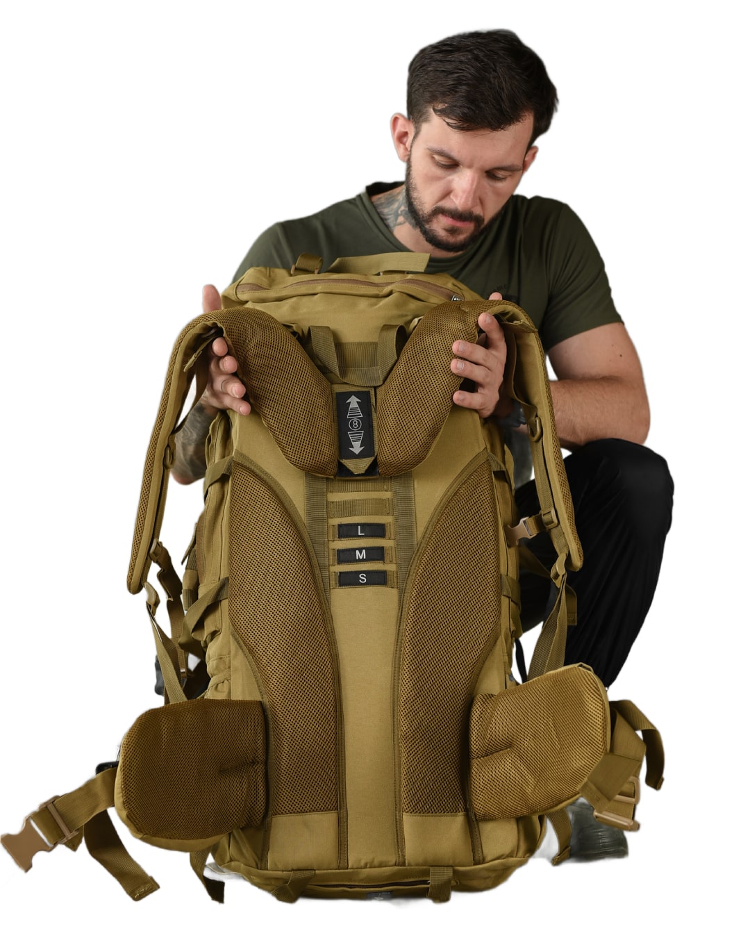Щільне прилягання рюкзака забезпечує контрольовані рухи: він не бовтається, не зміщується та не заважає ходьбі. Ця особливість особливо важлива для військових та туристів, які долають пересічений рельєф.