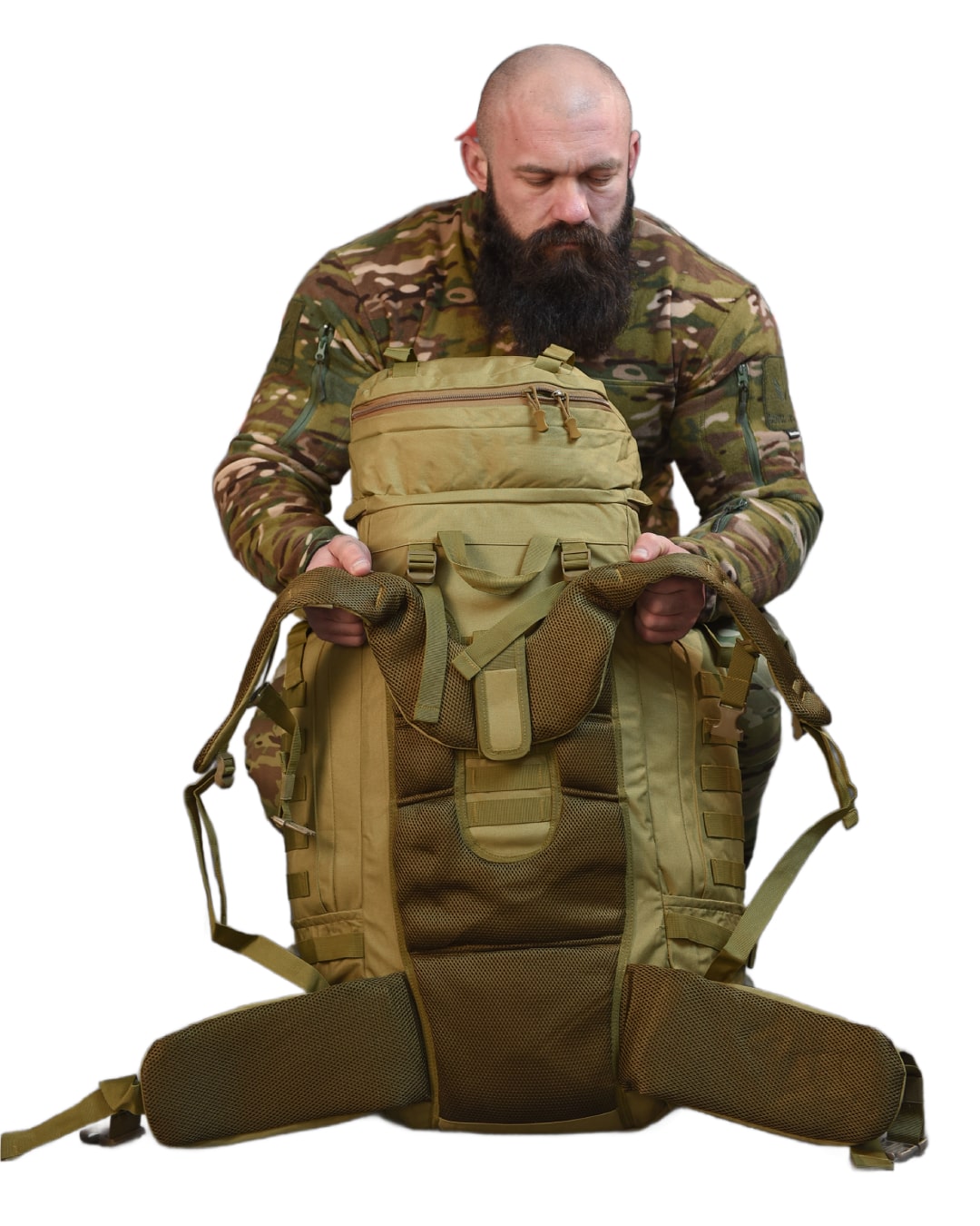 Щільне прилягання рюкзака забезпечує контрольовані рухи: він не бовтається, не зміщується та не заважає ходьбі. Ця особливість особливо важлива для військових та туристів, які долають пересічений рельєф.