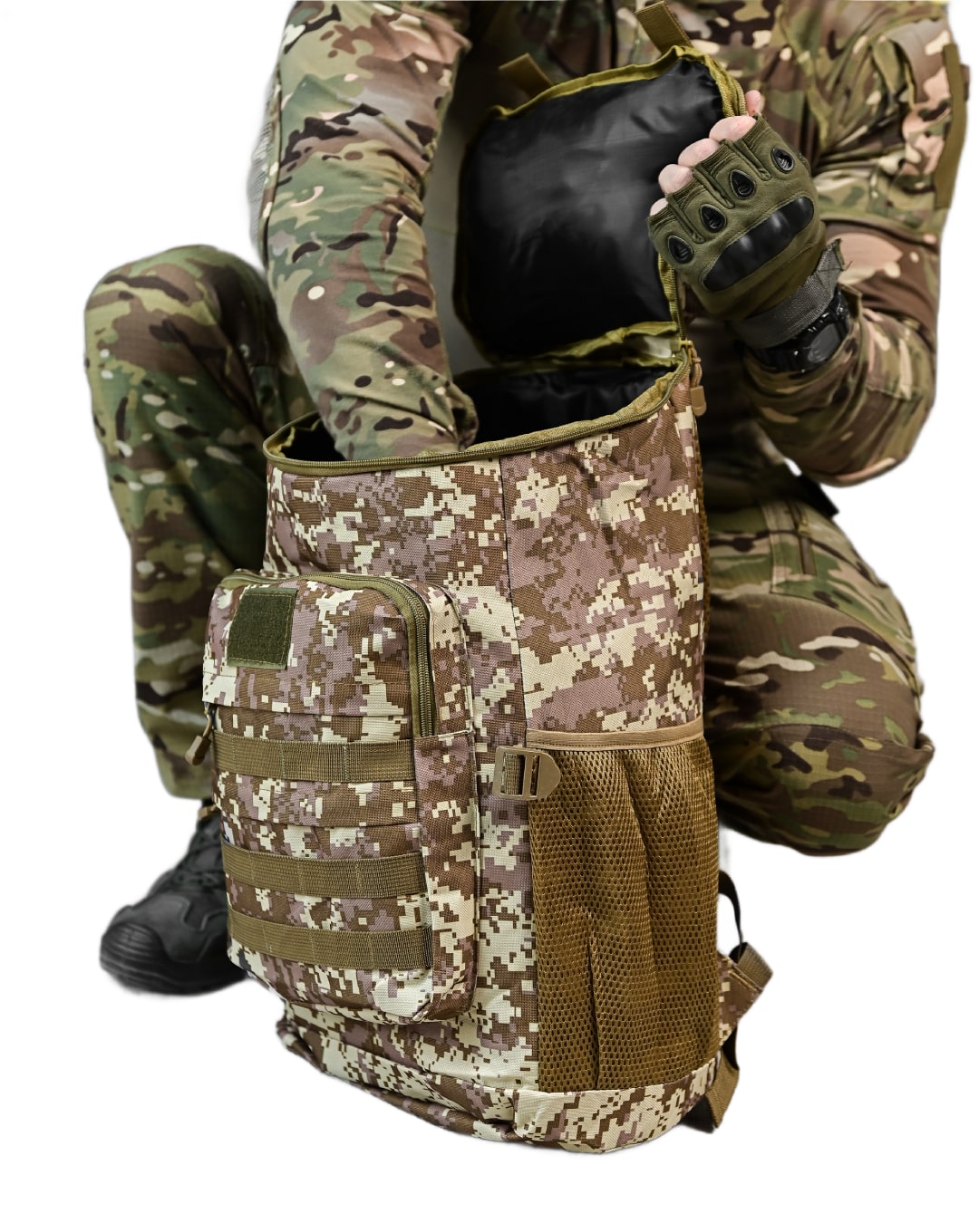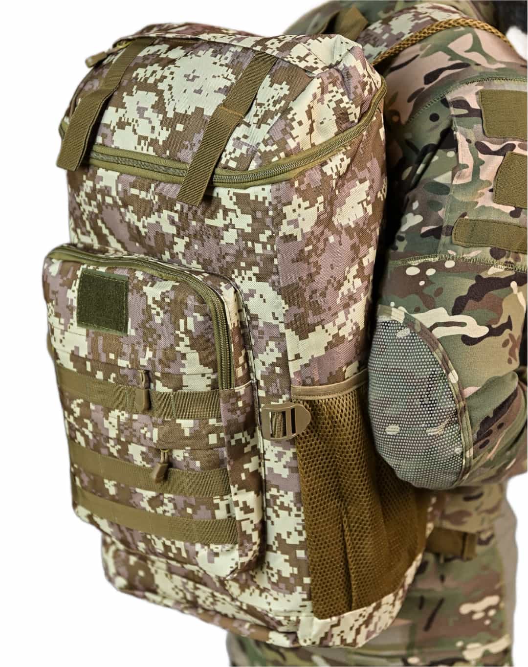 Тактичний рюкзак об’ємом 60 літрів — це місткий та практичний варіант для військових задач, туристичних походів, виїздів на природу, тренувань та повсякденного використання у польових умовах. Його конструкція дозволяє розмістити достатню кількість спорядження, одягу, продуктів або інших речей, необхідних для декількох днів автономного перебування. Саме тому модель можна використовувати як армійський рюкзак, як тактичний рюкзак для періоду служби, а також як туристичний рюкзак для трекінгу, походів у гори та подорожей. Часто такий тип спорядження обирають волонтери та військові як рюкзак ЗСУ, адже він поєднує місткість, практичність і доступну ціну.