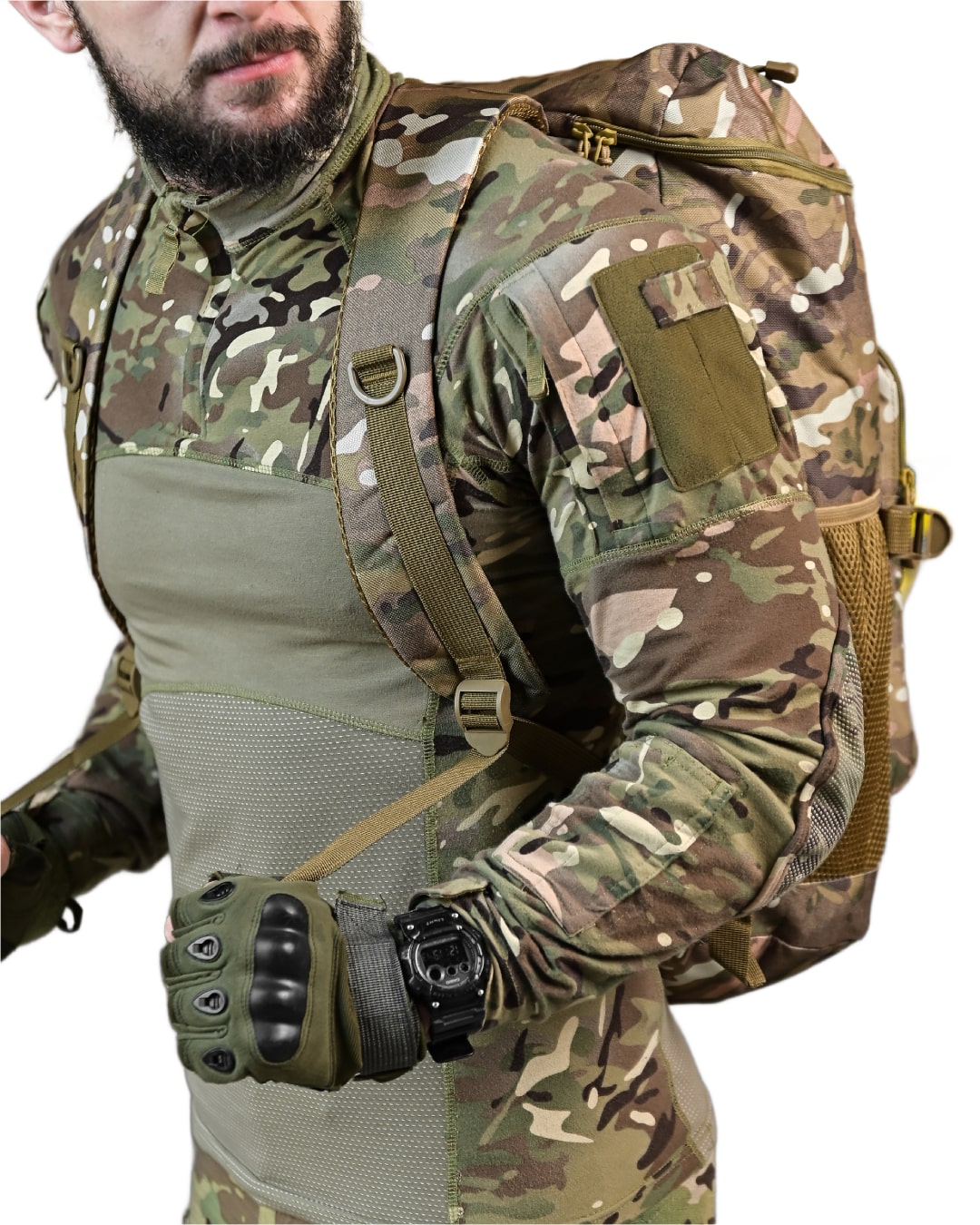 Тактичний рюкзак об’ємом 60 літрів — це місткий та практичний варіант для військових задач, туристичних походів, виїздів на природу, тренувань та повсякденного використання у польових умовах. Його конструкція дозволяє розмістити достатню кількість спорядження, одягу, продуктів або інших речей, необхідних для декількох днів автономного перебування. Саме тому модель можна використовувати як армійський рюкзак, як тактичний рюкзак для періоду служби, а також як туристичний рюкзак для трекінгу, походів у гори та подорожей. Часто такий тип спорядження обирають волонтери та військові як рюкзак ЗСУ, адже він поєднує місткість, практичність і доступну ціну.