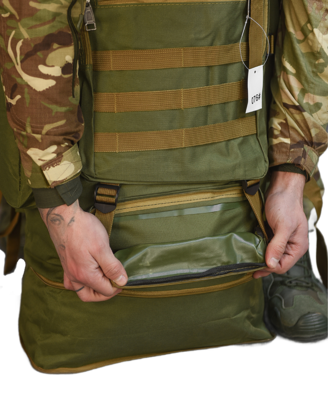 Такий тактичний рюкзак буде корисним у багатьох ситуаціях. Якщо ви шукаєте армійський рюкзак для служби — велика місткість дозволяє перевозити форму, взуття, предмети першої необхідності та спорядження. Він також стане хорошим варіантом для туристів, яким потрібно переносити одяг, спальник, харчі та інше оснащення. Тривалі поїздки, експедиції, кемпінг, робочі виїзди — у кожному випадку великий рюкзак допоможе організовано розмістити все необхідне.