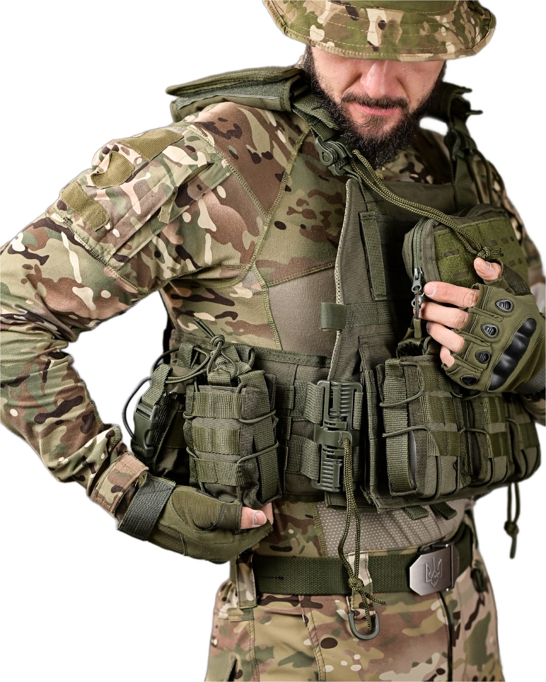 Тактична плитоноска з підсумками Cordura 4 точки скидання Олива