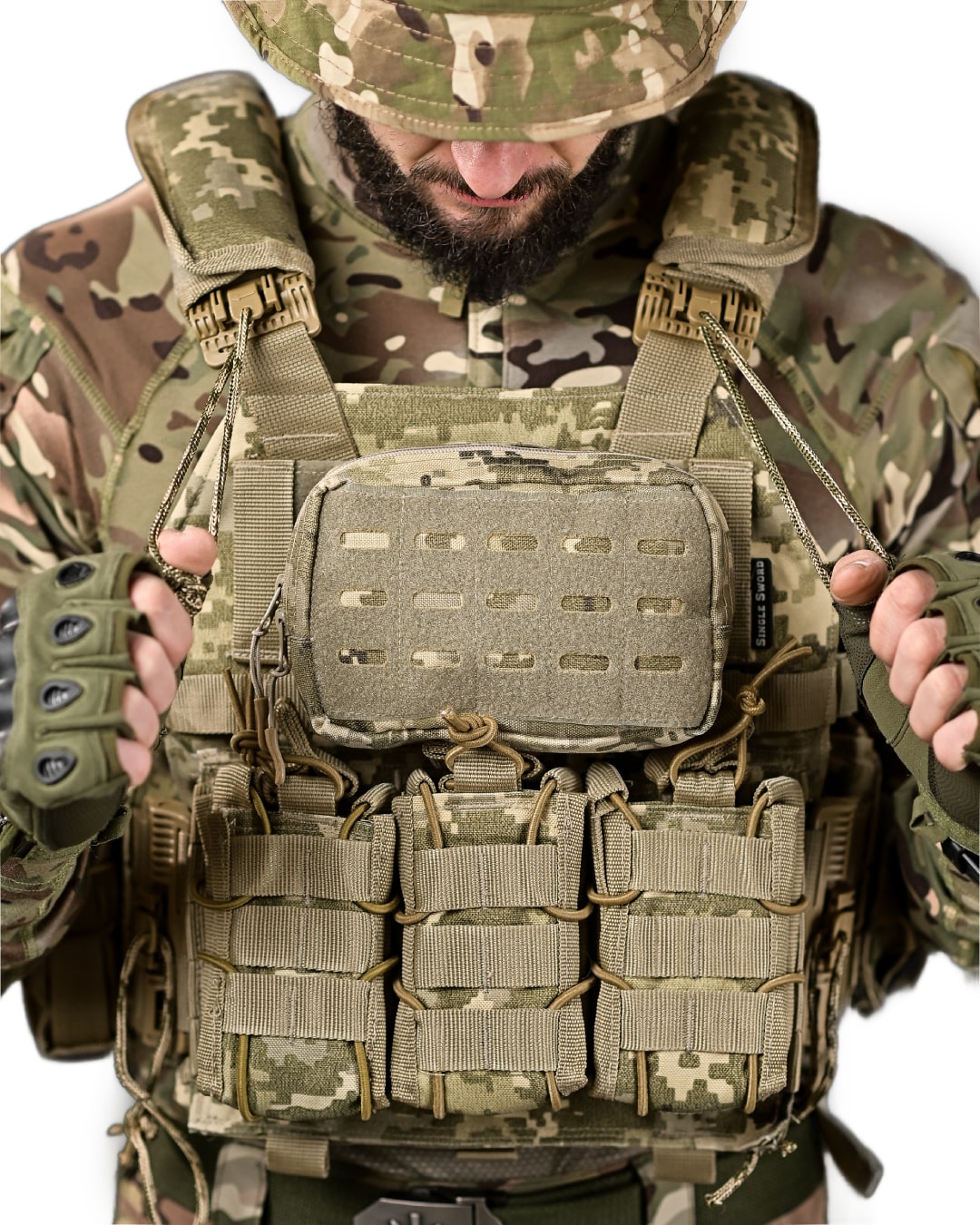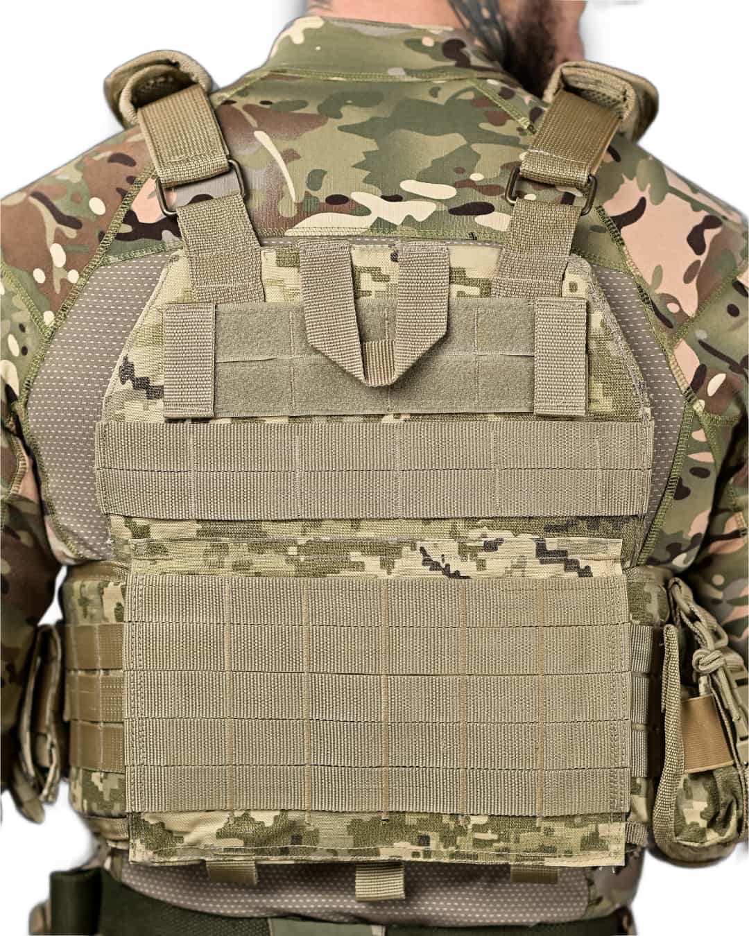 Завдяки міцному матеріалу та регульованому розміру, військова плитоноска забезпечує стабільну посадку та комфорт навіть при тривалому використанні. Демпферна сітка зменшує тиск на тіло, а комплектація з підсумками дозволяє одразу використовувати виріб без додаткових доукомплектацій.
