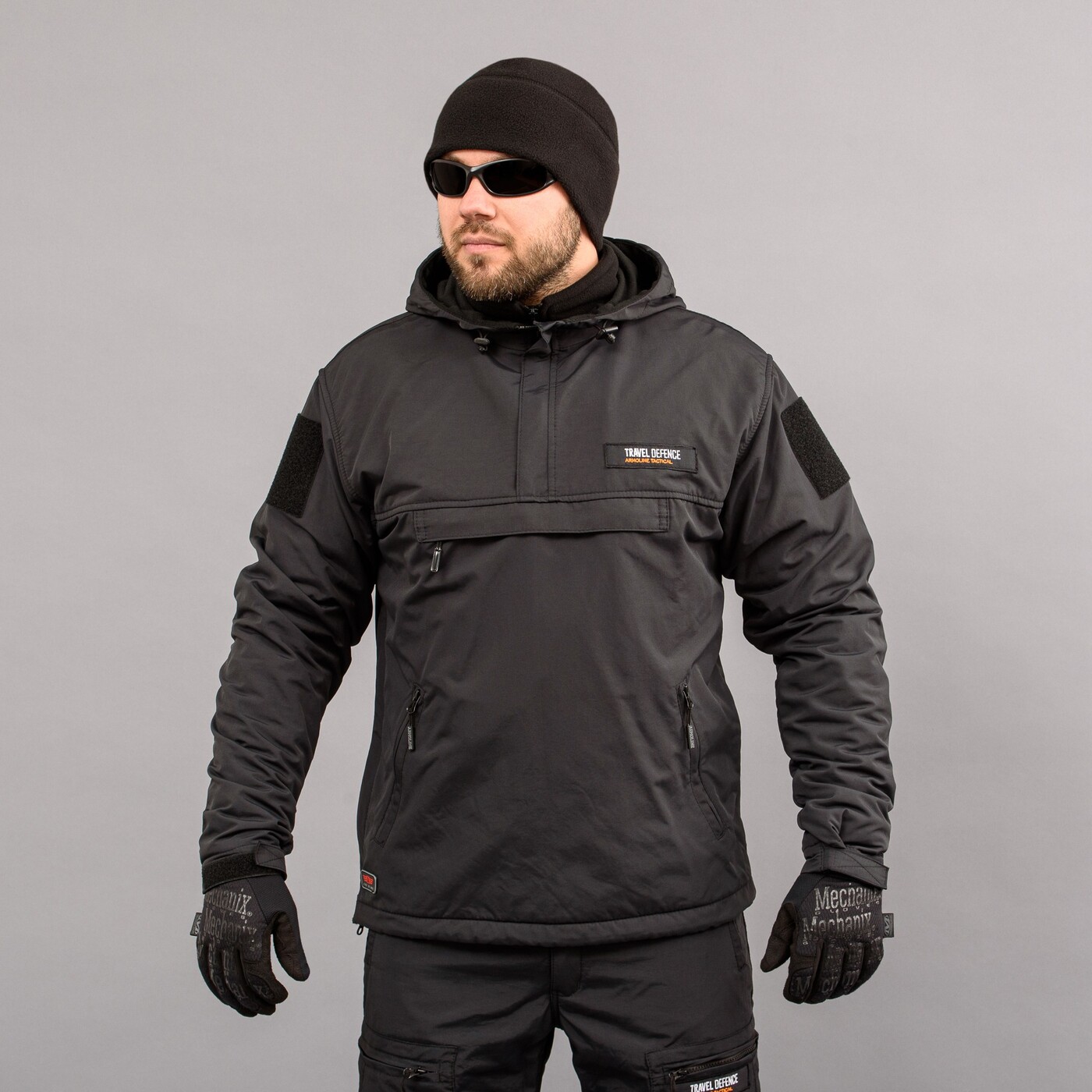 Анорак (одягається через голову) це вид одягу який заслужив повагу у людей багато часу проводять поза домом! Конструкція дозволяє відчути себе захищеним від вологи і вітру, відсутність звичних гудзиків і блискавок дозволяють зберегти максимум тепла без товстого утеплювача. Правильний анорак повинен бути легким, не обмежувати рухів, забезпечувати максимум комфорту – "TRAVEL DEFENCE" якраз такий анорак!