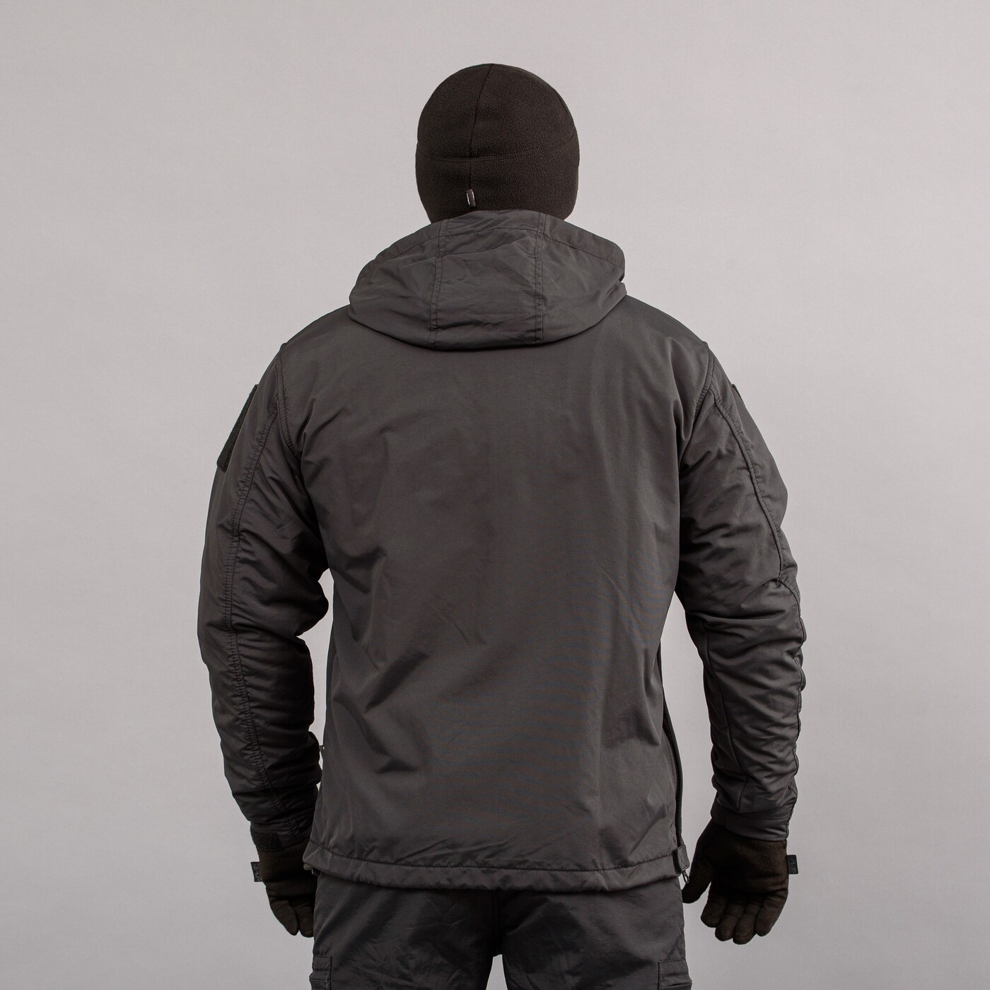 - в бічному шві, праворуч – вшита блискавка, що полегшує надягання анорака