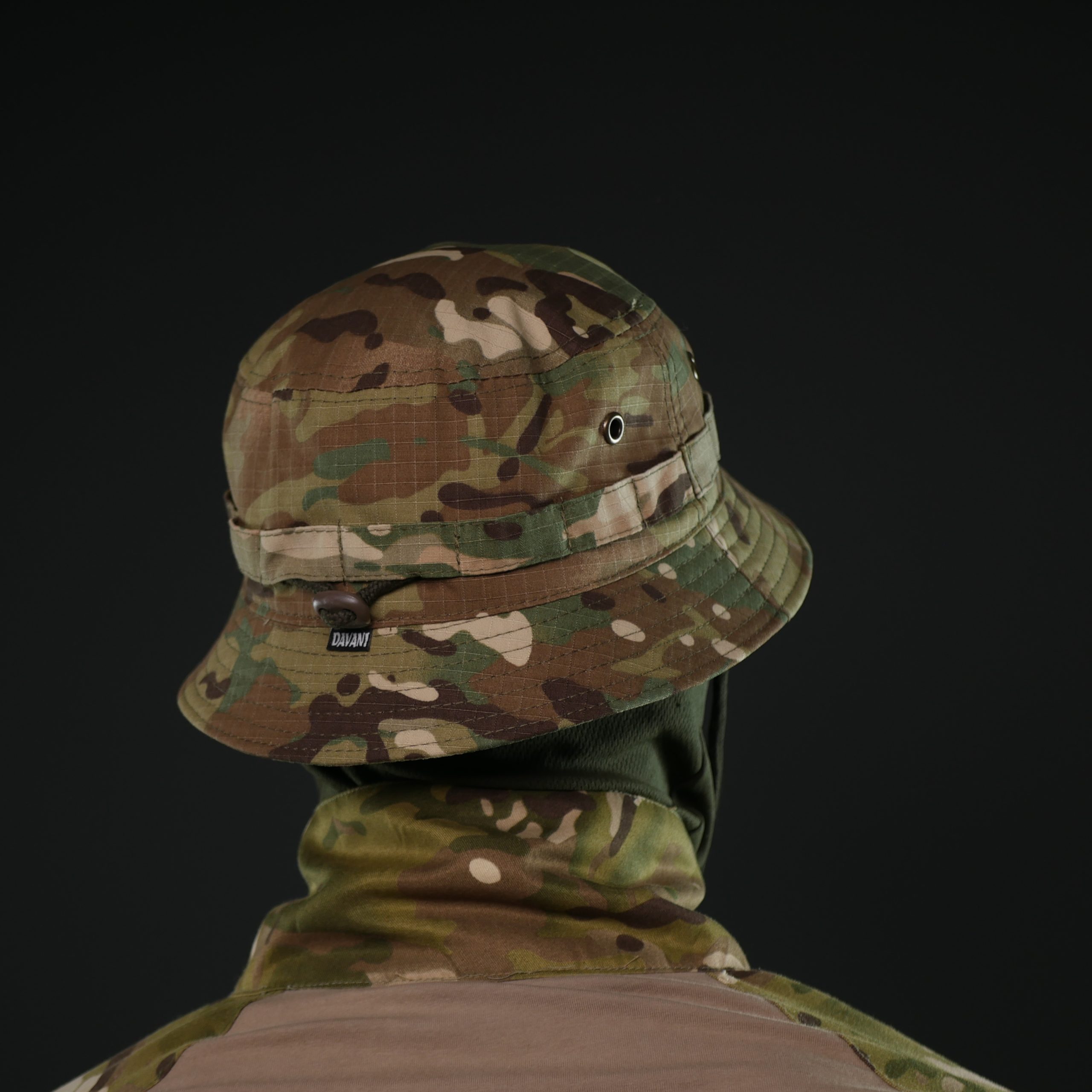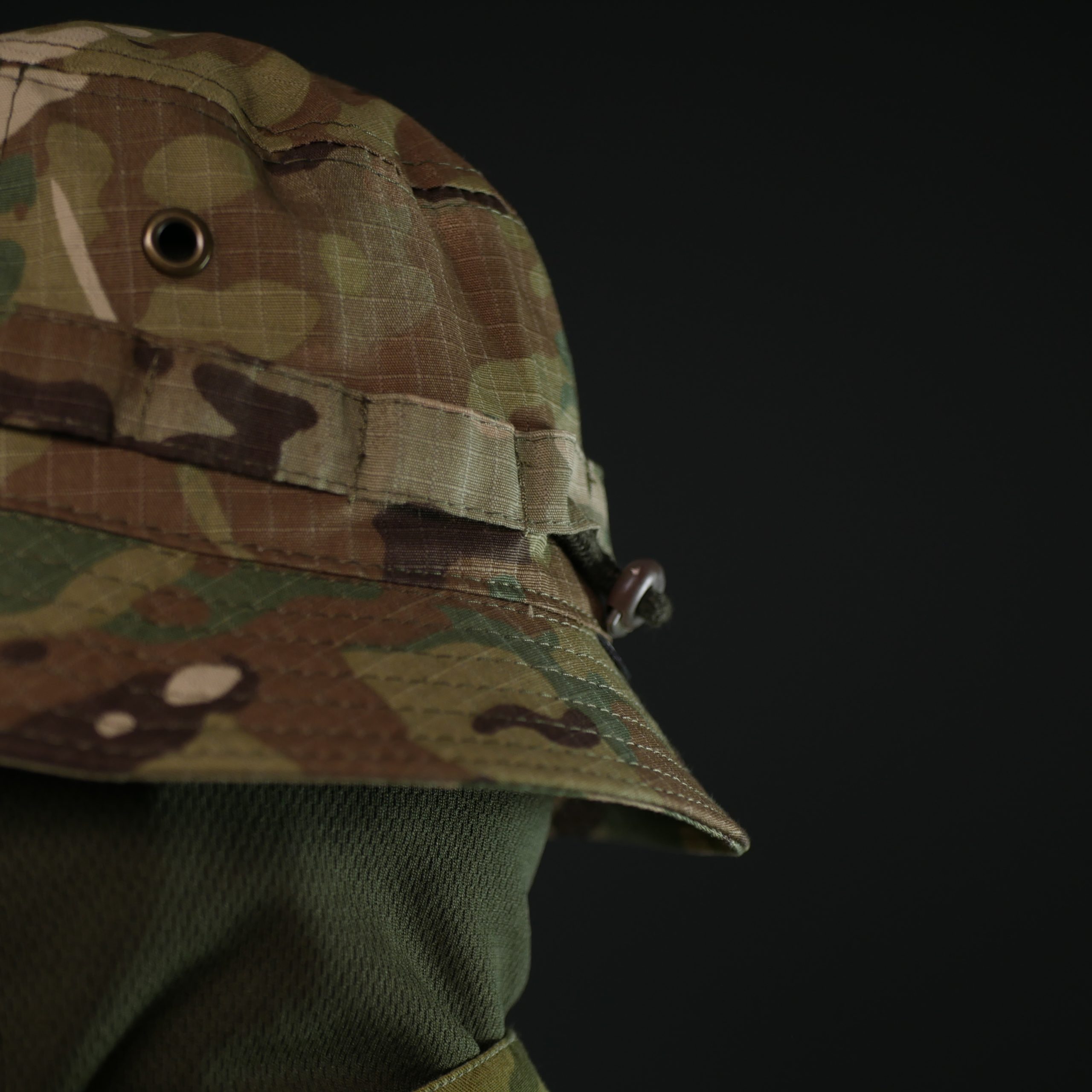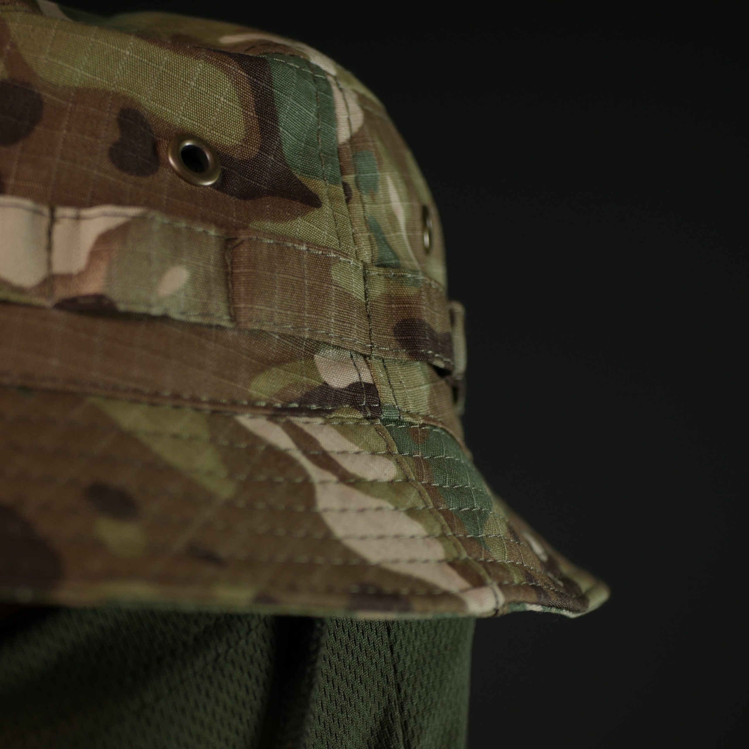 Надійна й зносостійка панама для тактичних завдань, туризму або активного відпочинку. Виготовлена з міцної тканини Rip-Stop, що забезпечує високий захист від розривів і пошкоджень. Спеціальне водовідштовхувальне просочення дозволяє зберігати комфорт навіть у вологу погоду.