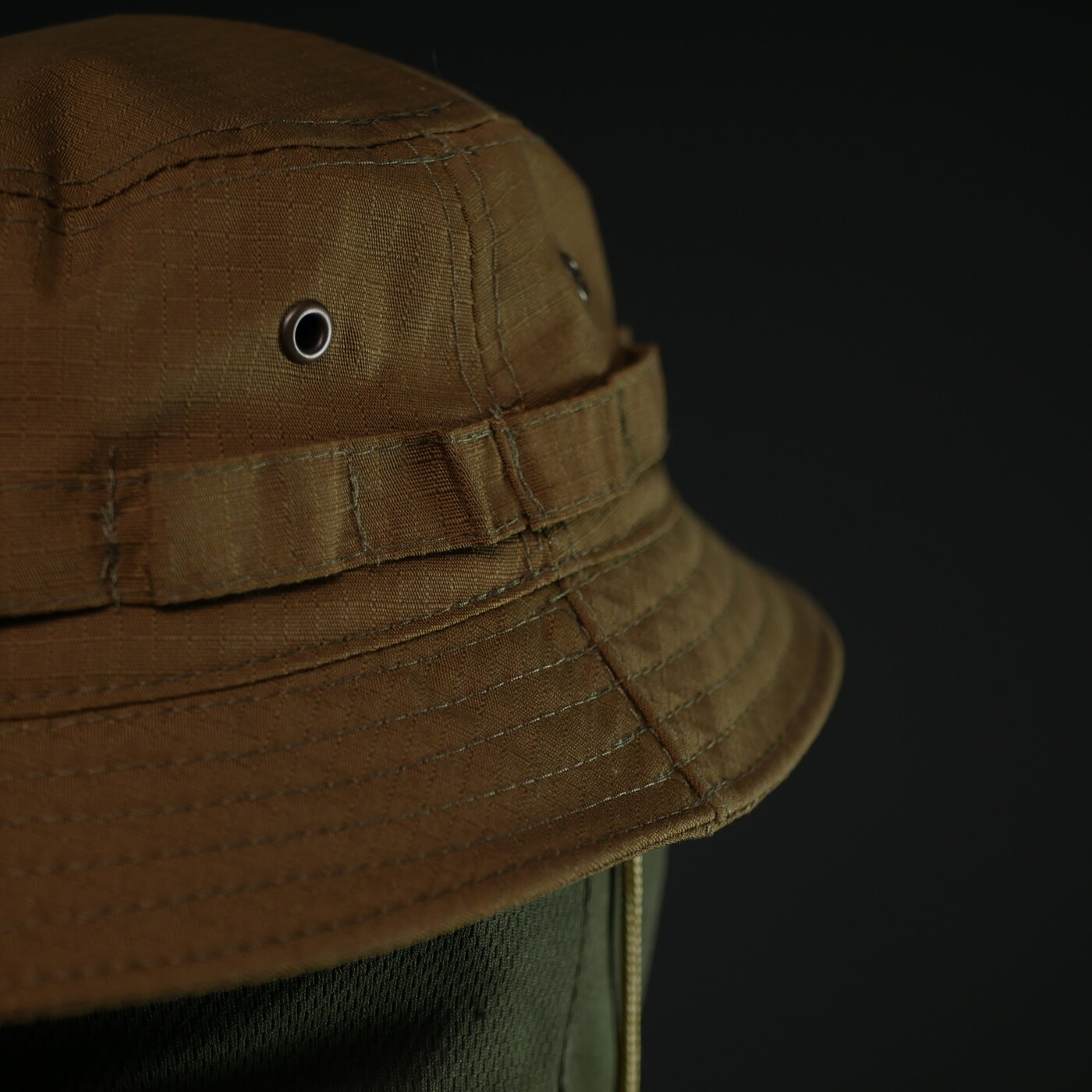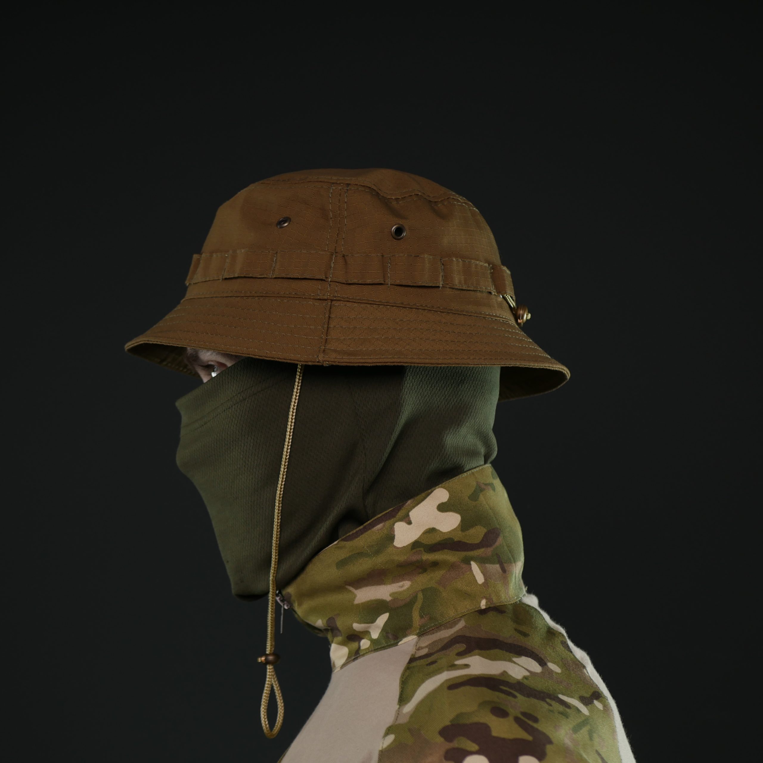 Надійна й зносостійка панама для тактичних завдань, туризму або активного відпочинку. Виготовлена з міцної тканини Rip-Stop, що забезпечує високий захист від розривів і пошкоджень. Спеціальне водовідштовхувальне просочення дозволяє зберігати комфорт навіть у вологу погоду.