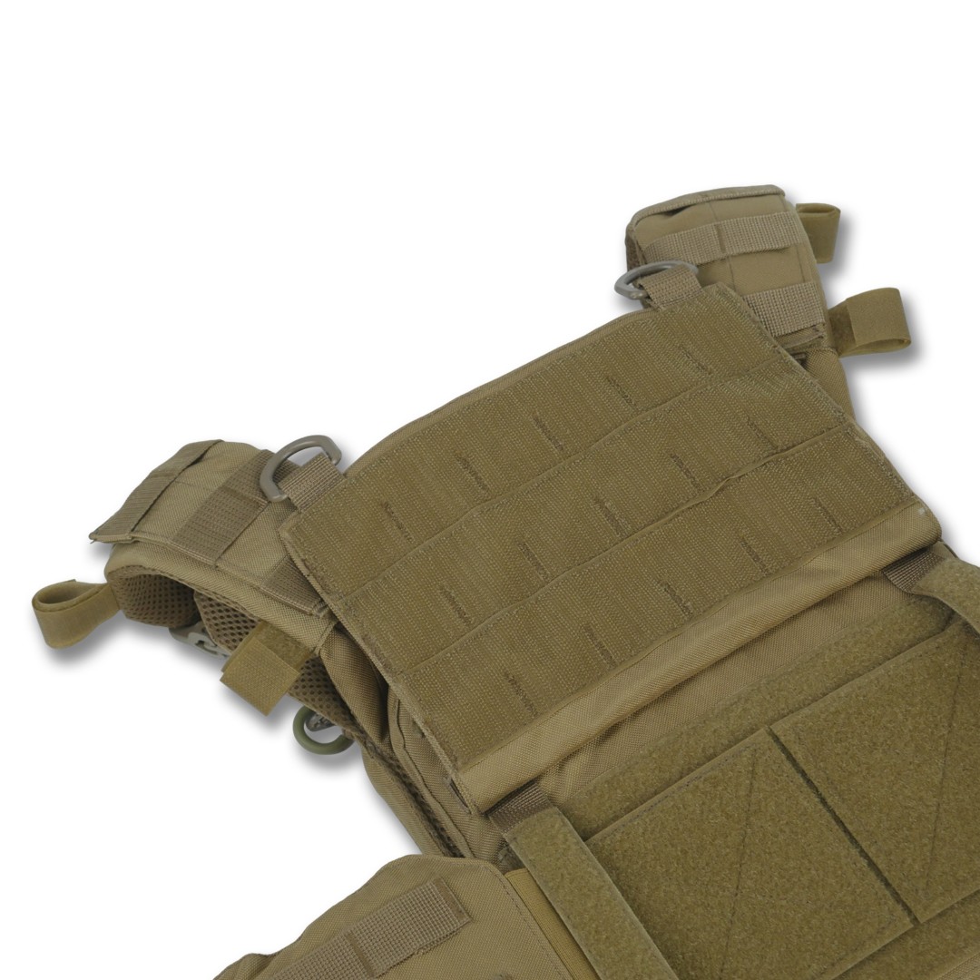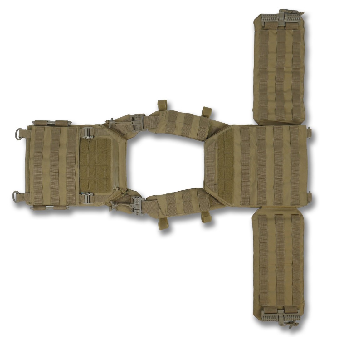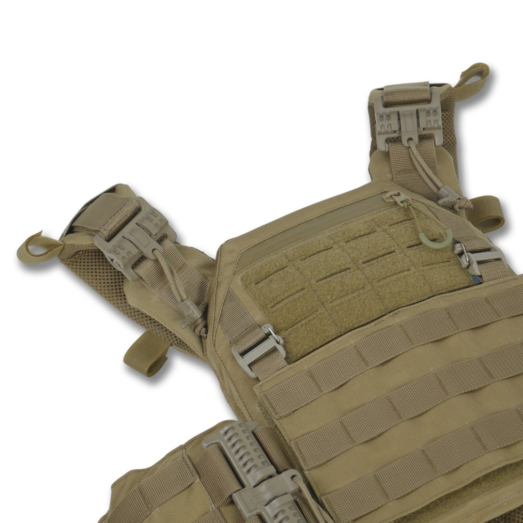 Удосконалена знімна передня панель з Molle-кріпленнями, велкро і карабінами Woojin для швидкої зміни спорядження. Демферні вставки, що поліпшують вентиляцію завдяки 3D-сітці, товщиною 3 мм. Плитоноска оснащена системою швидкого скидання і плечах і камербандах в екстрених ситуаціях. Камербанди з демпферами, розділеними на п'ять частин, з Molle-системою та кишенями під балістичні пакети 1-го або 2-го класу від компанії Militex.