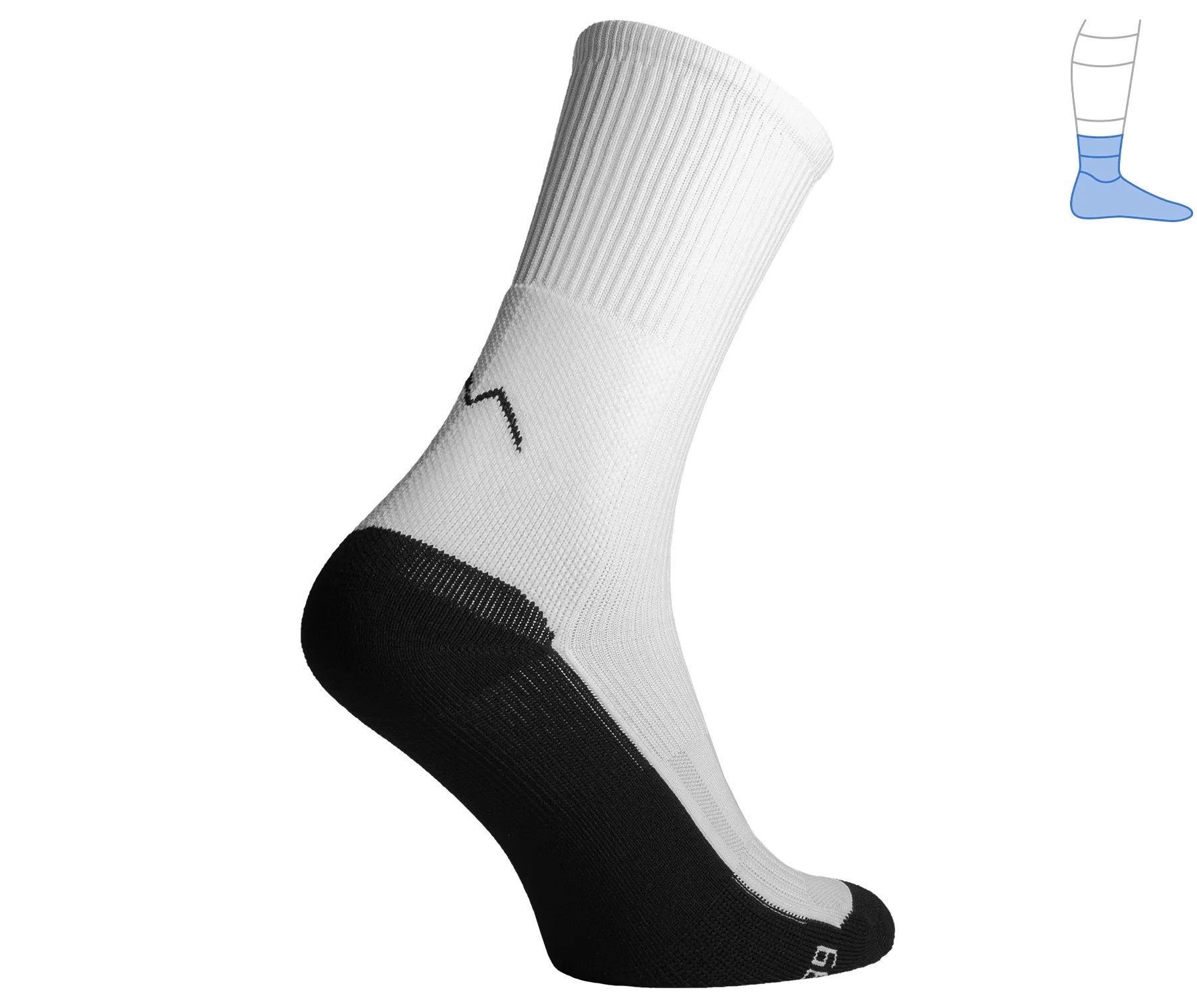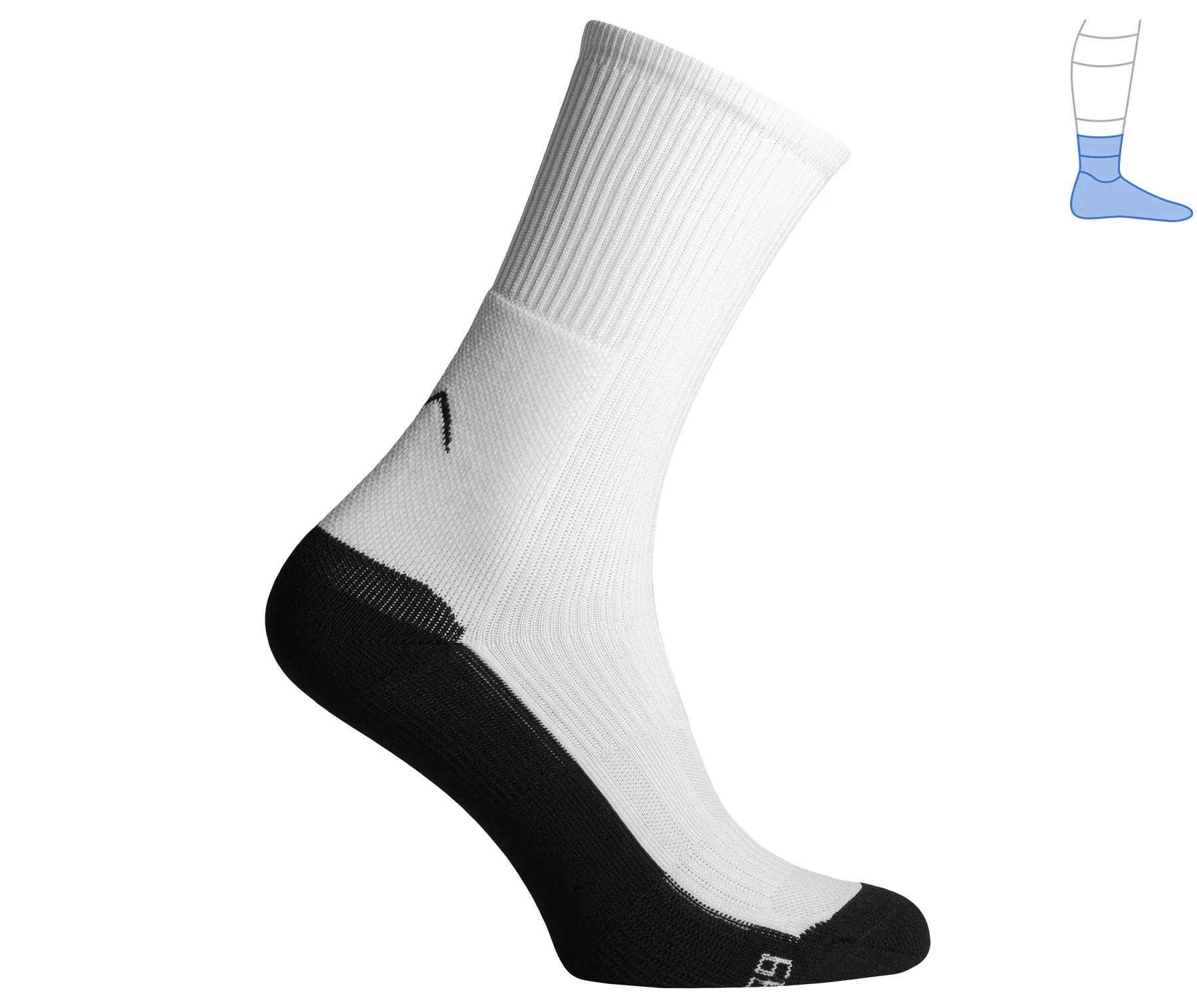 - Додаткова еластична фіксація на стопі утримує шкарпетки на місці, запобігаючи утворенню зморшок і дискомфорту.