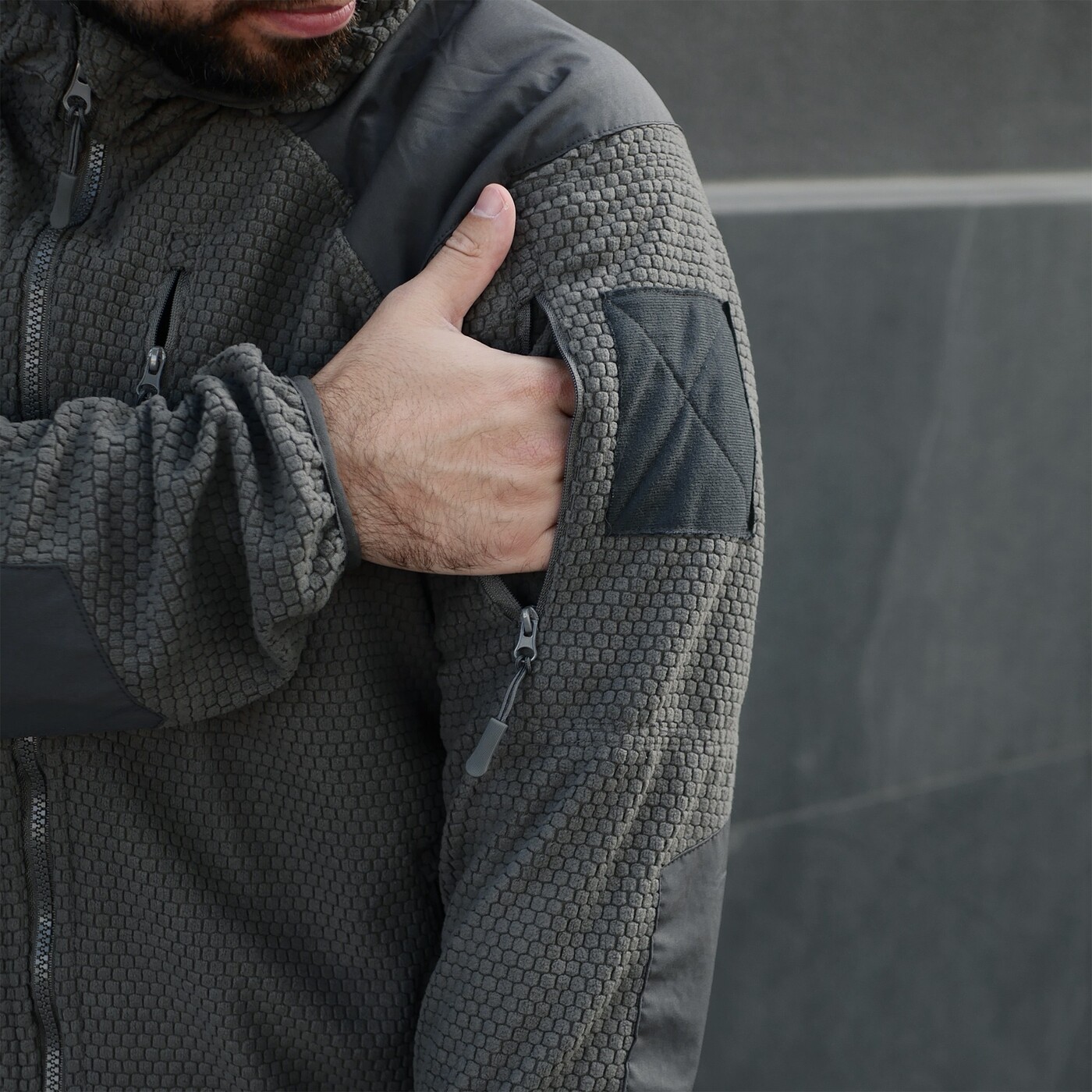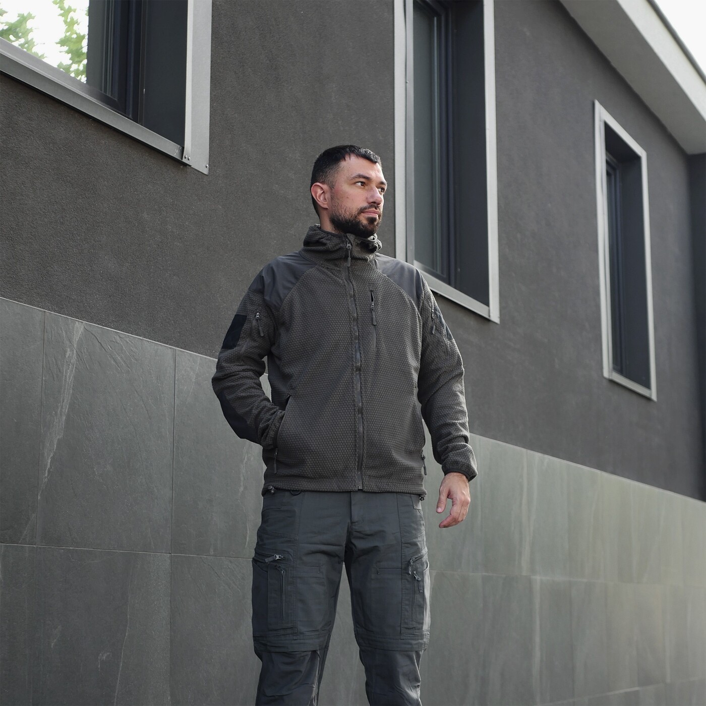 Флісова кофта Shark у кольорі графіт поєднує тепло, зручність і функціональність, роблячи її універсальним вибором як для щоденного використання, так і для служби чи активного відпочинку на природі. Виготовлена з флісу вафельної структури, вона зберігає тепло, водночас ефективно відводячи вологу, що гарантує комфорт навіть під час інтенсивних дій.