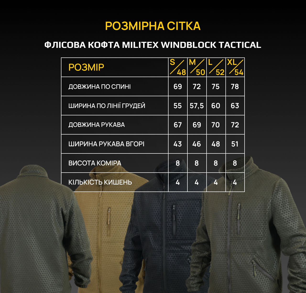 Militex Windblock Tactical – універсальна флісова кофта, яка забезпечує максимальний комфорт та надійний захист у будь-яких умовах. Відмінна терморегуляція допомагає підтримувати оптимальну температуру тіла. Завдяки зносостійкому та еластичному флісу кофта легко витримує інтенсивне використання, не втрачаючи форми, а простота догляду робить її практичним вибором для повсякденного носіння.