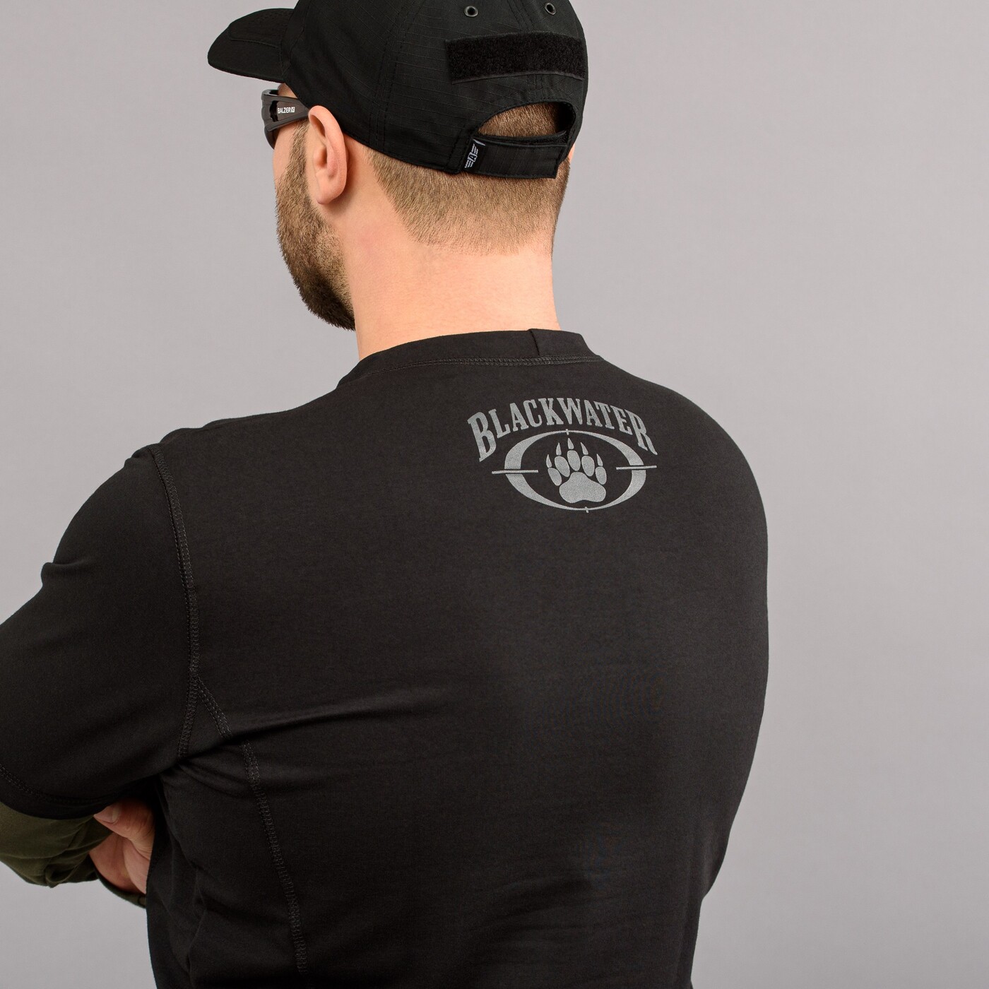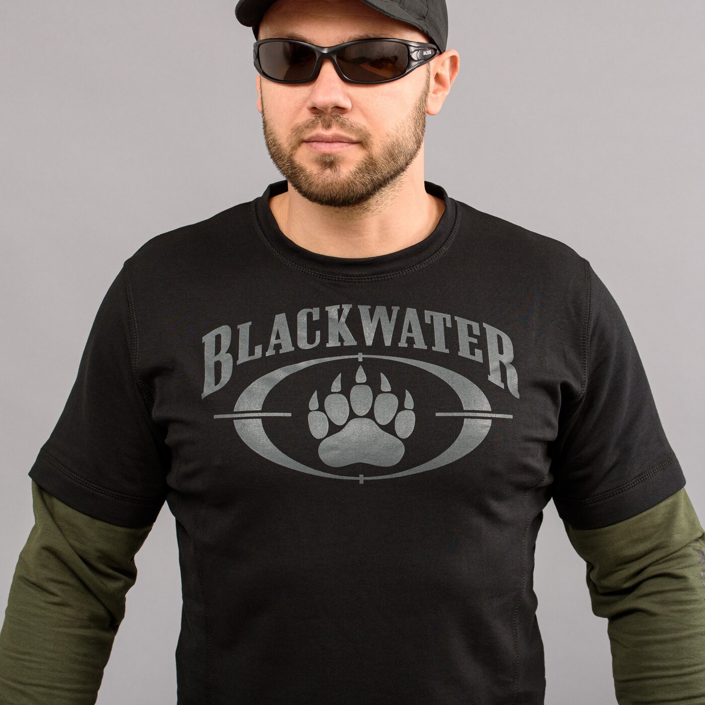 Стильна мілітарі футболка з рукавами і принтом логотипу легендарної ПВК "Black Water".