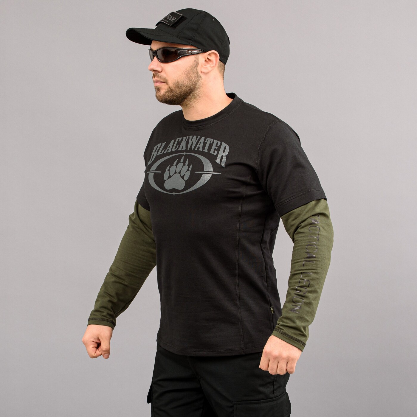 Футболка з рукавами “BLACK WATER” BLACK & OLIVE (Трикотаж)