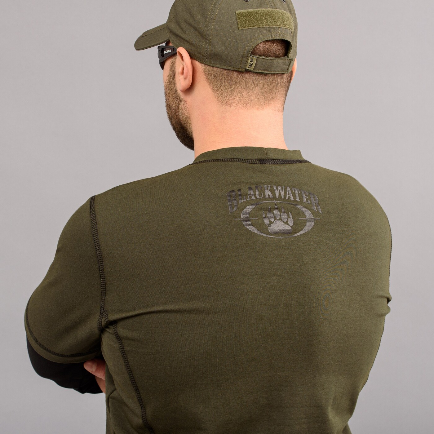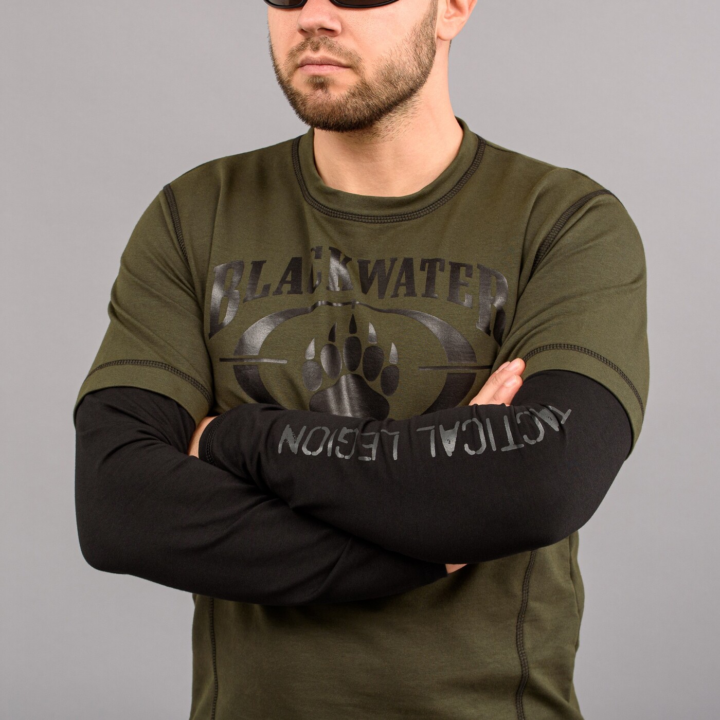 Стильна мілітарі футболка з рукавами і принтом логотипу легендарної ПВК "Black Water".