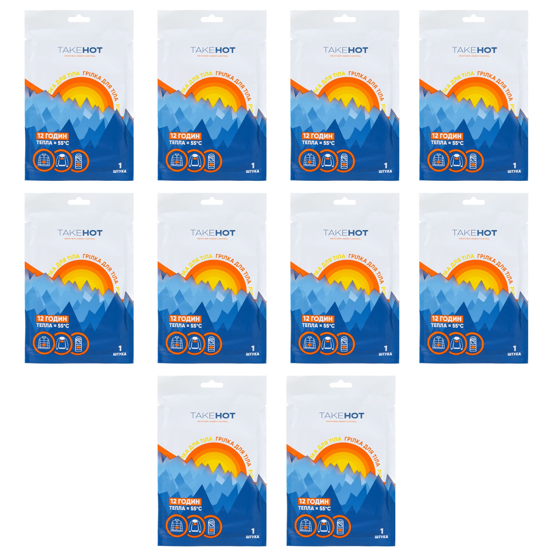 Кількість грілок в упаковці: 10 окремих штук