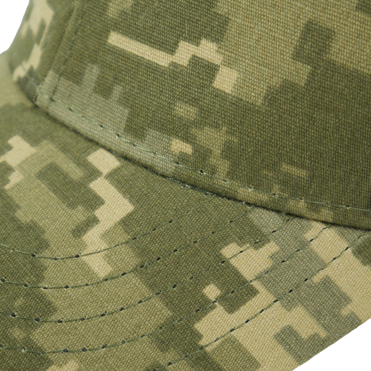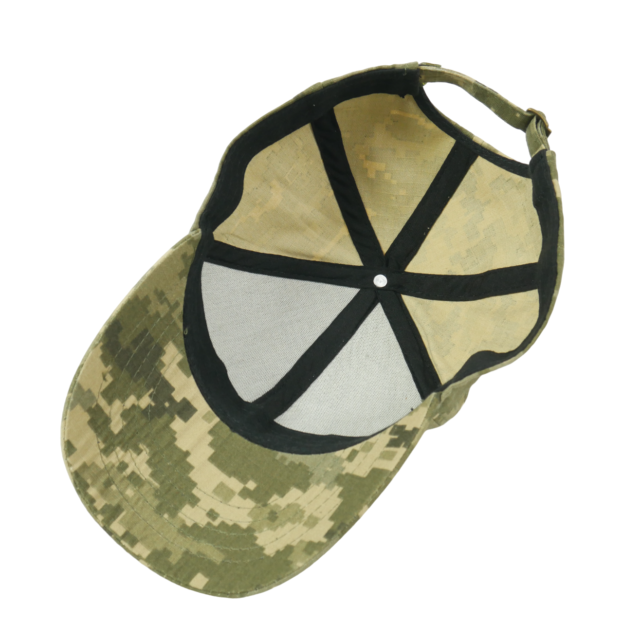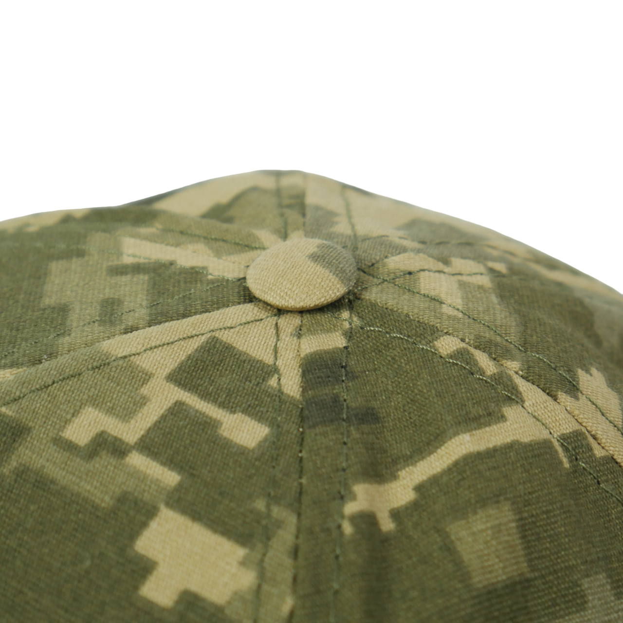 Кепка бейсболка тактична, камуфляжна. Пошита із щільної спеціальної тканини ріп-стоп, тканина з водовідштовхувальним покриттям. Склад 50% бавовна, 50% поліестр. Кепка бейсболка з жорстким козирком, ущільненою лобовою частиною, з регулюванням об’єму. Надійно захищає як від сонячних променів, так і від можливих опадів. Зручна посадка головного убору.