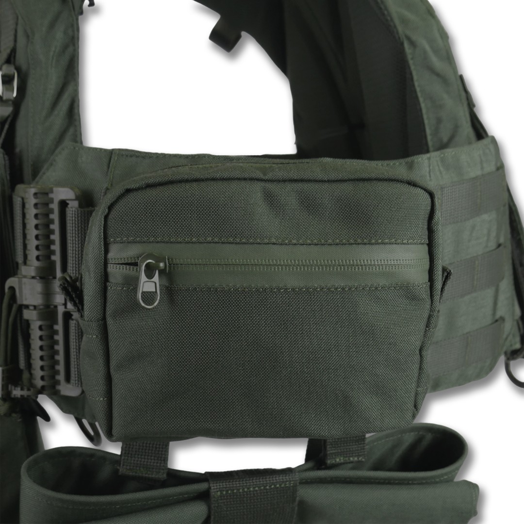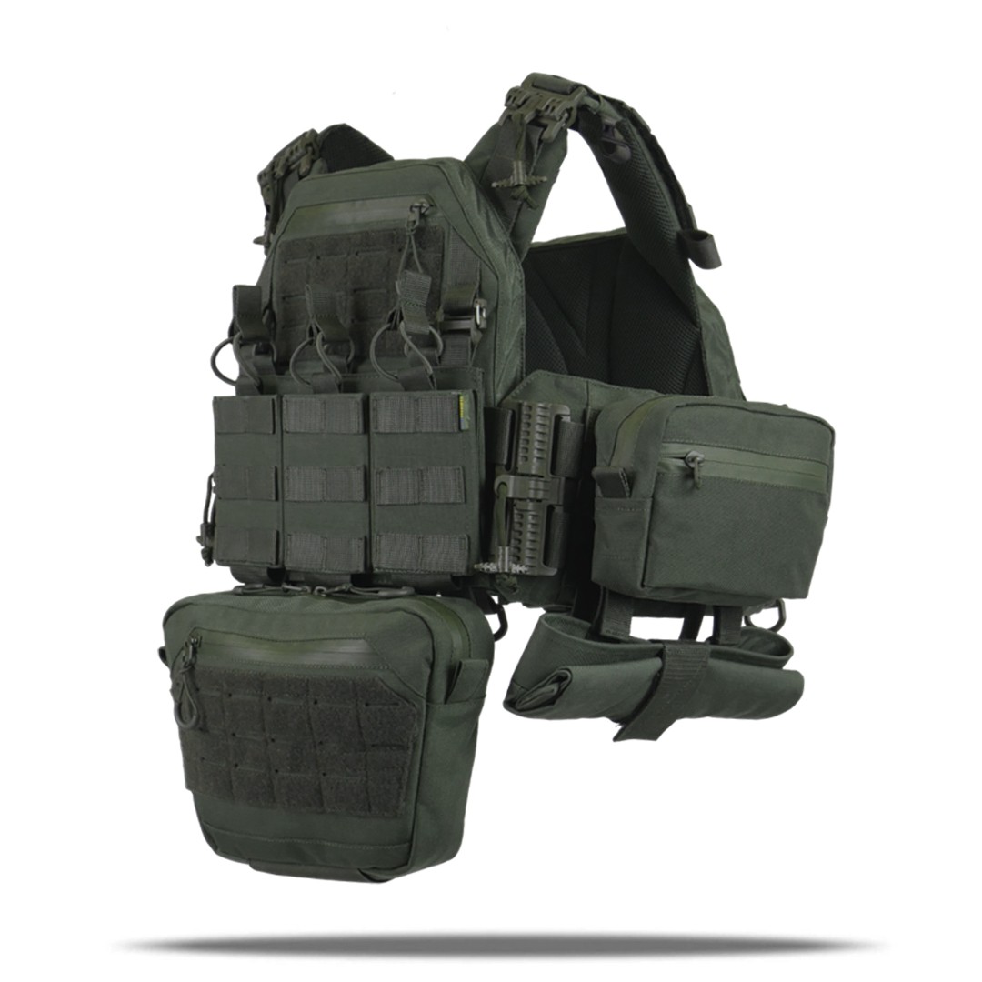 Комплект плитоноски Kiborg GU gen.2 з шістьма підсумками Хакі – це сучасна модель бронезахисту, що забезпечує надійність і комфорт. Вона сумісна зі стандартними бронеплитами 25х30 см (металевими або керамічними товщиною до 30 мм). Плитоноска оснащена знімною панеллю Molle, яка кріпиться на Velcro і карабіни Woojin. Панель може швидко змінюватися для заміни підсумків або іншого Molle-сумісного спорядження.