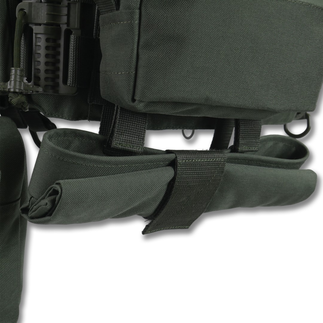 - Камербанди знімні, оснащені м'якими демпферами і трьома рядами строп Molle для кріплення підсумків.