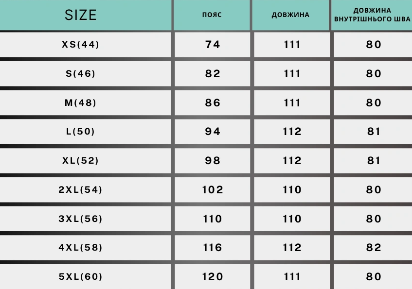 46 ,48 ,50 ,52 ,54 ,56 ,58 ,60 |