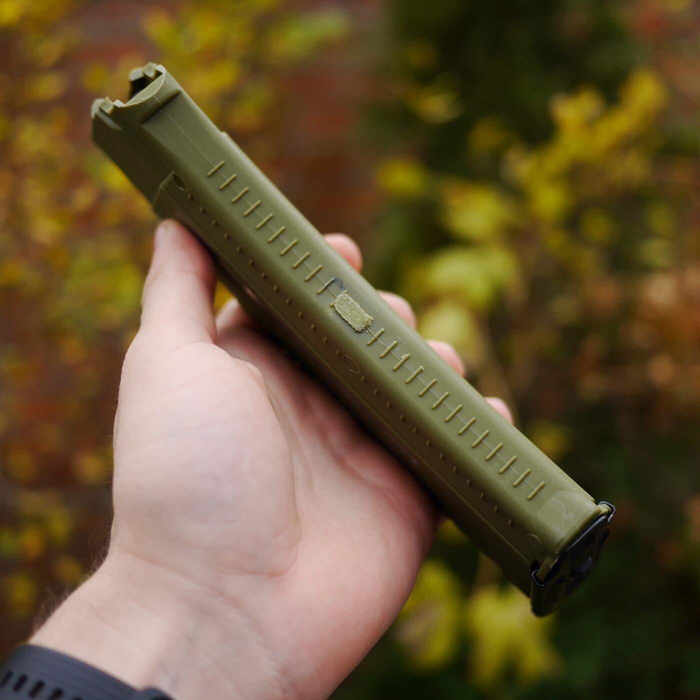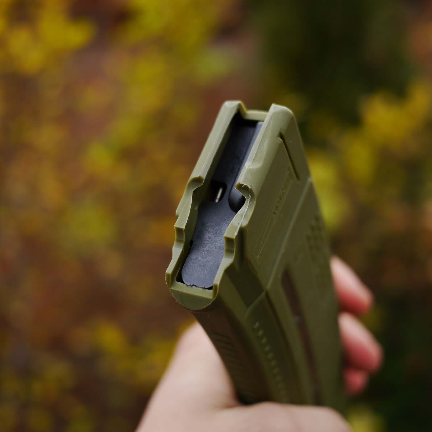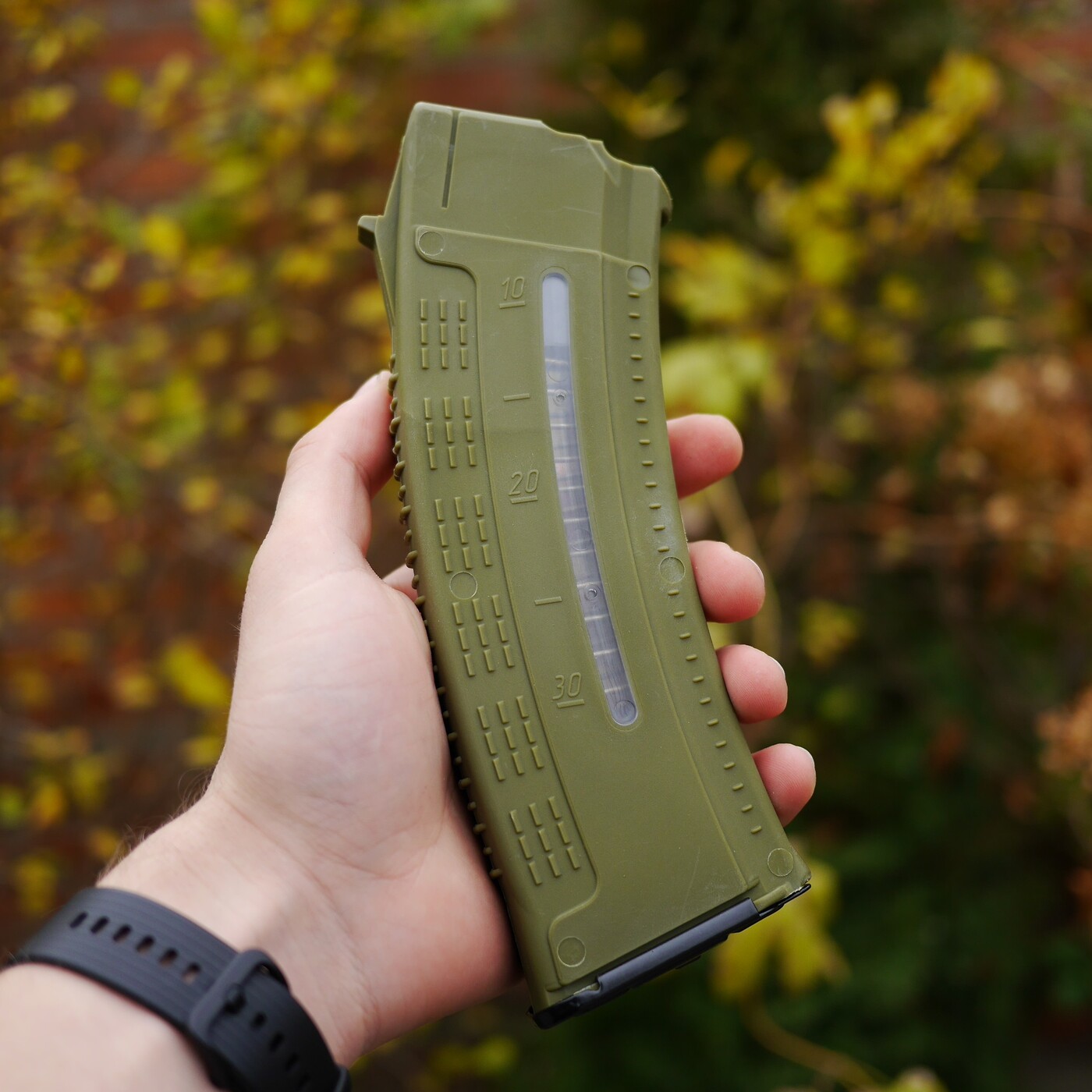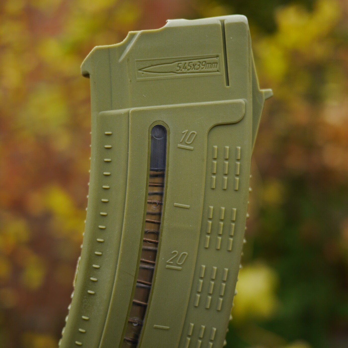 Магазин для АК коробчатий з вікном для контролю кількості заряду патронів олива
