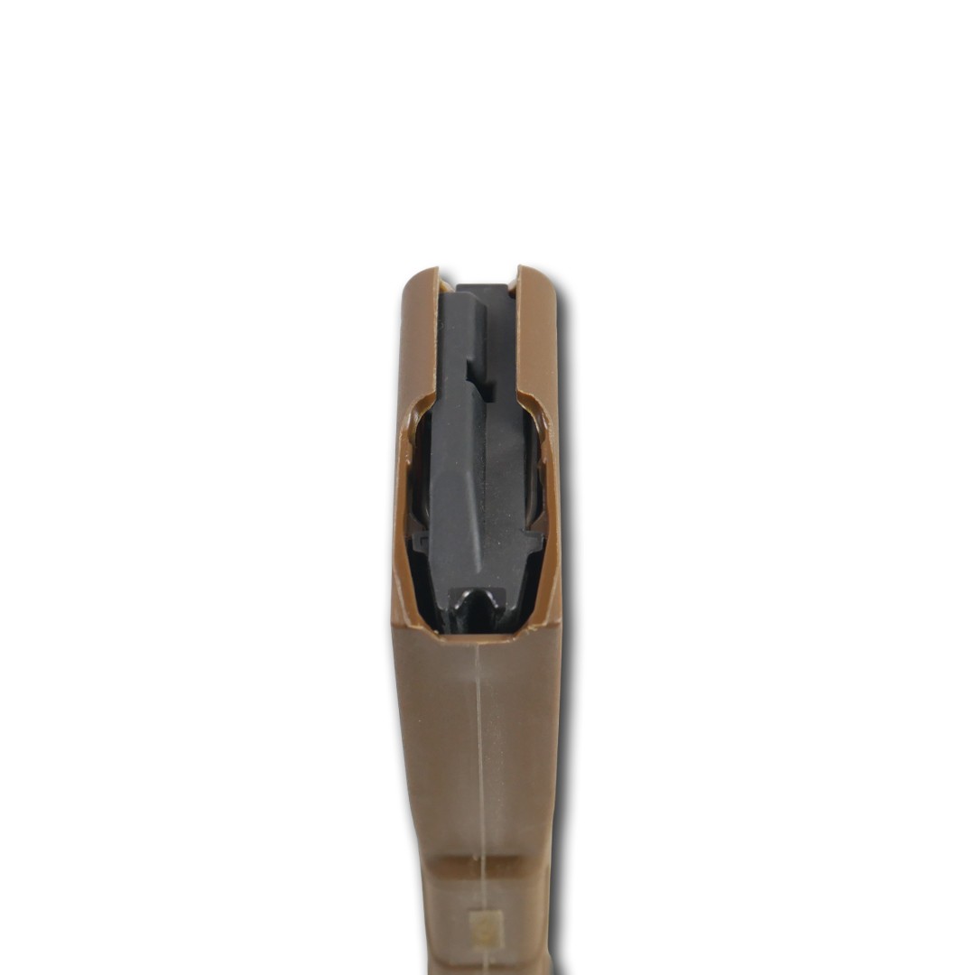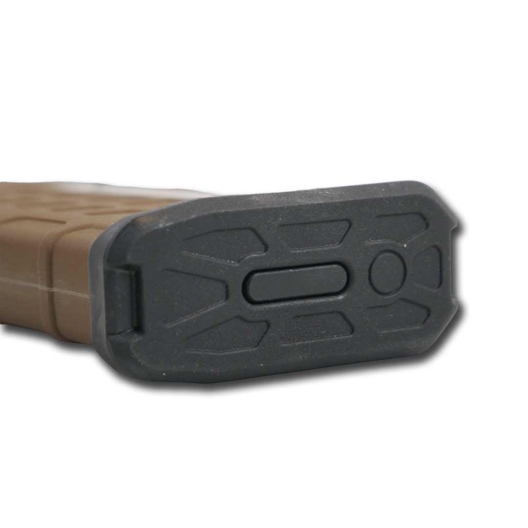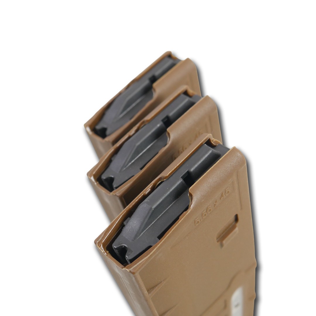 Магазин легко розбирається та відрізняється удароміцною полімерною конструкцією з нижньою пластиною, що розширюється, для вилучення магазину. Пружна пружина зроблена з нержавіючої сталі для захисту від корозії, а штовхач змазується самостійно, що перешкоджає нахилу для підвищення надійності.