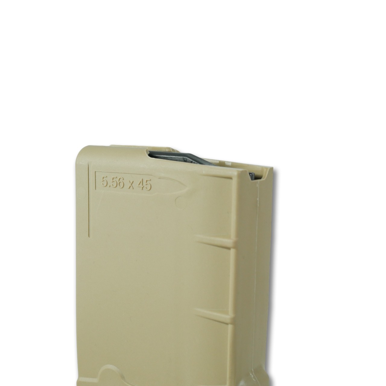 Магазин легко розбирається та відрізняється удароміцною полімерною конструкцією з нижньою пластиною, що розширюється, для вилучення магазину. Пружна пружина зроблена з нержавіючої сталі для захисту від корозії, а штовхач змазується самостійно, що перешкоджає нахилу для підвищення надійності.
