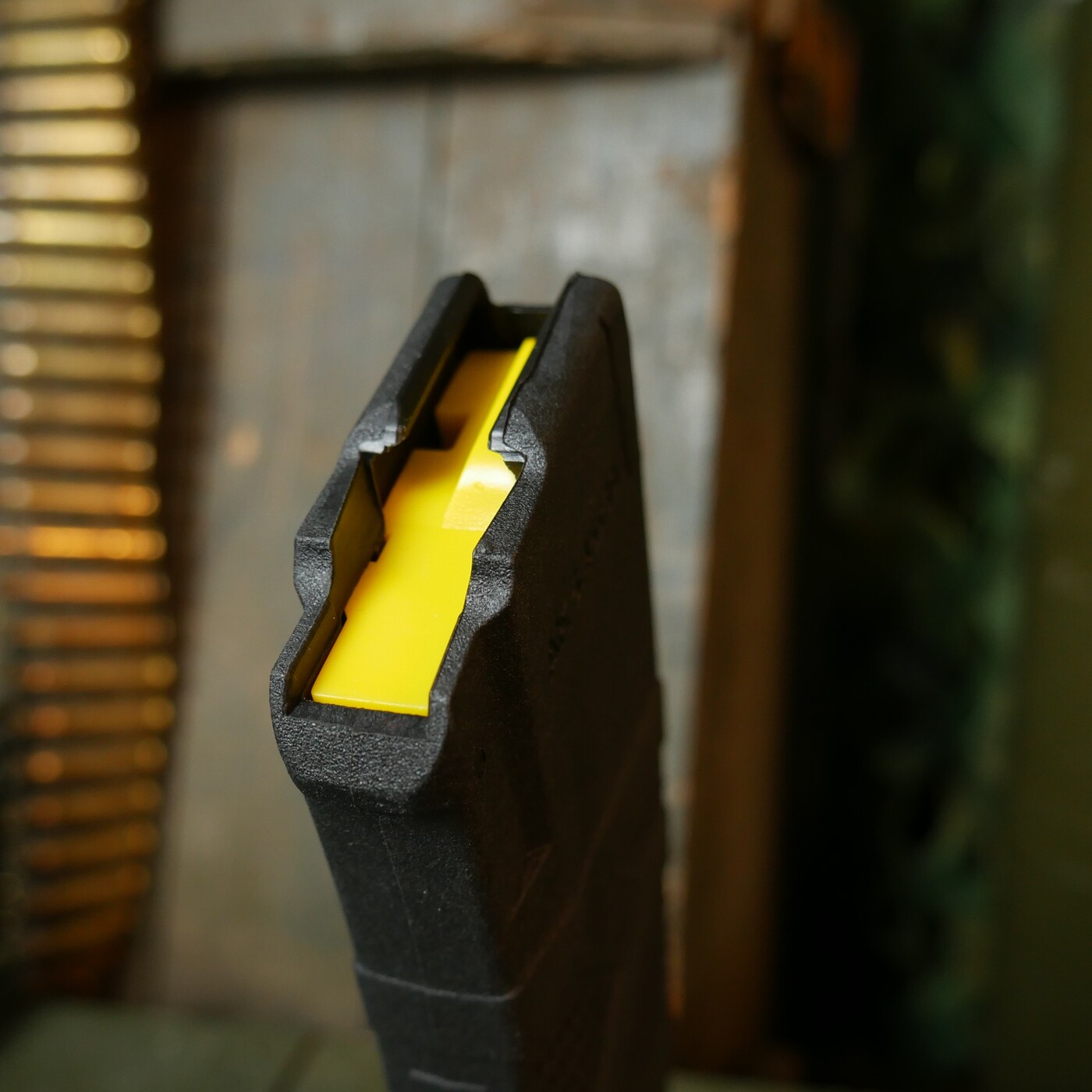 • Яскравий жовтий (або червоний) подавач допомагає легко визначати наявність боєприпасів у магазині.