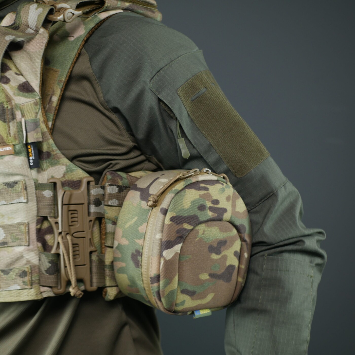 Кріплення: Система MOLLE на зворотній стороні — для фіксації на плитоноску, рюкзак або ремінь.