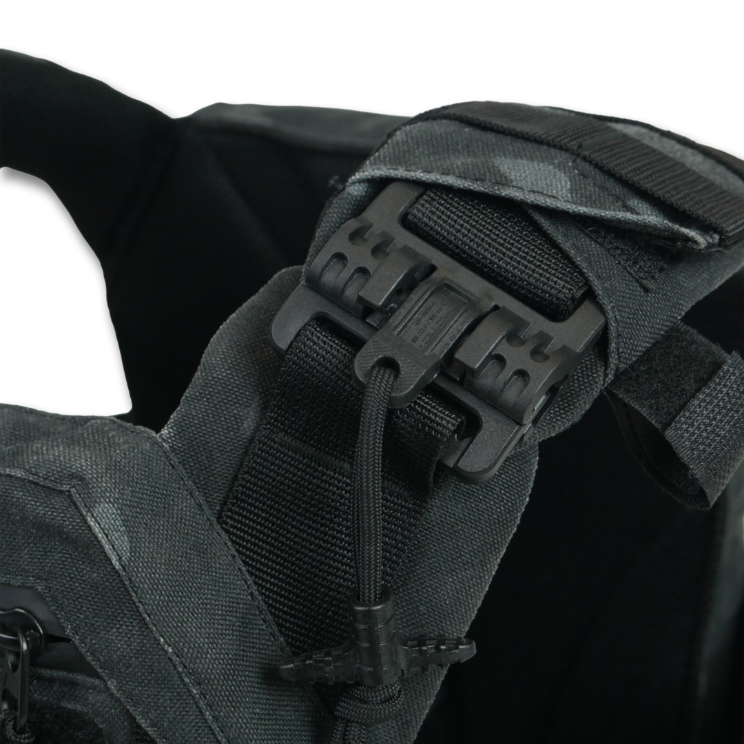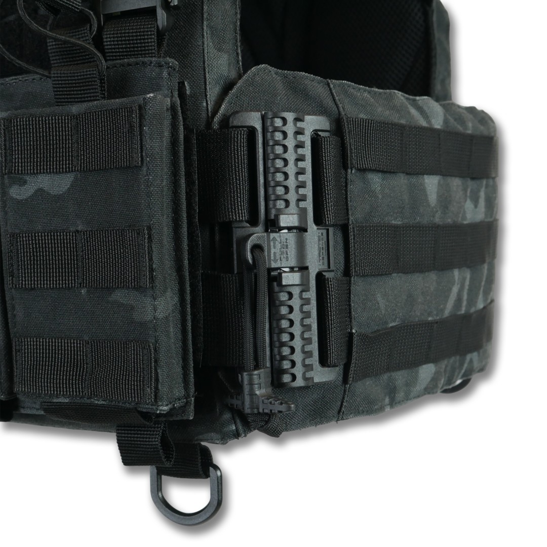 Подвійна система швидкого скидання в зоні плечей і камербандів забезпечує швидке скидання плитоноски за лічені секунди, потягнувши за паракорд.