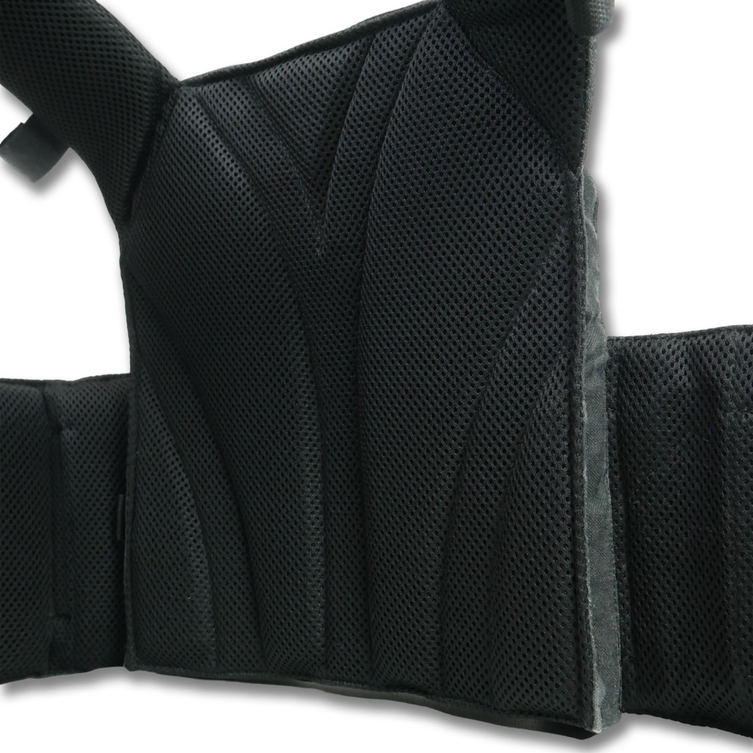 Плітоноска оснащена: Демпферними вставками всередині плітоноски обшиті 3D-сіткою товщиною 3 мм, що забезпечує правильну циркуляцію повітря і амортизацію. Плечові лямки з демпферами забезпечують, що забезпечують зручне носіння, мають систему регулювання по довжині і стропи Molle для додаткового спорядження (наприклад, турнікет або рацію). Камербанди з м'якими демпферами для гнучкості та вентиляції, що забезпечують комфортне носіння та можливість швидкого регулювання за розміром. Вони також мають кишені для балістичних пакетів.