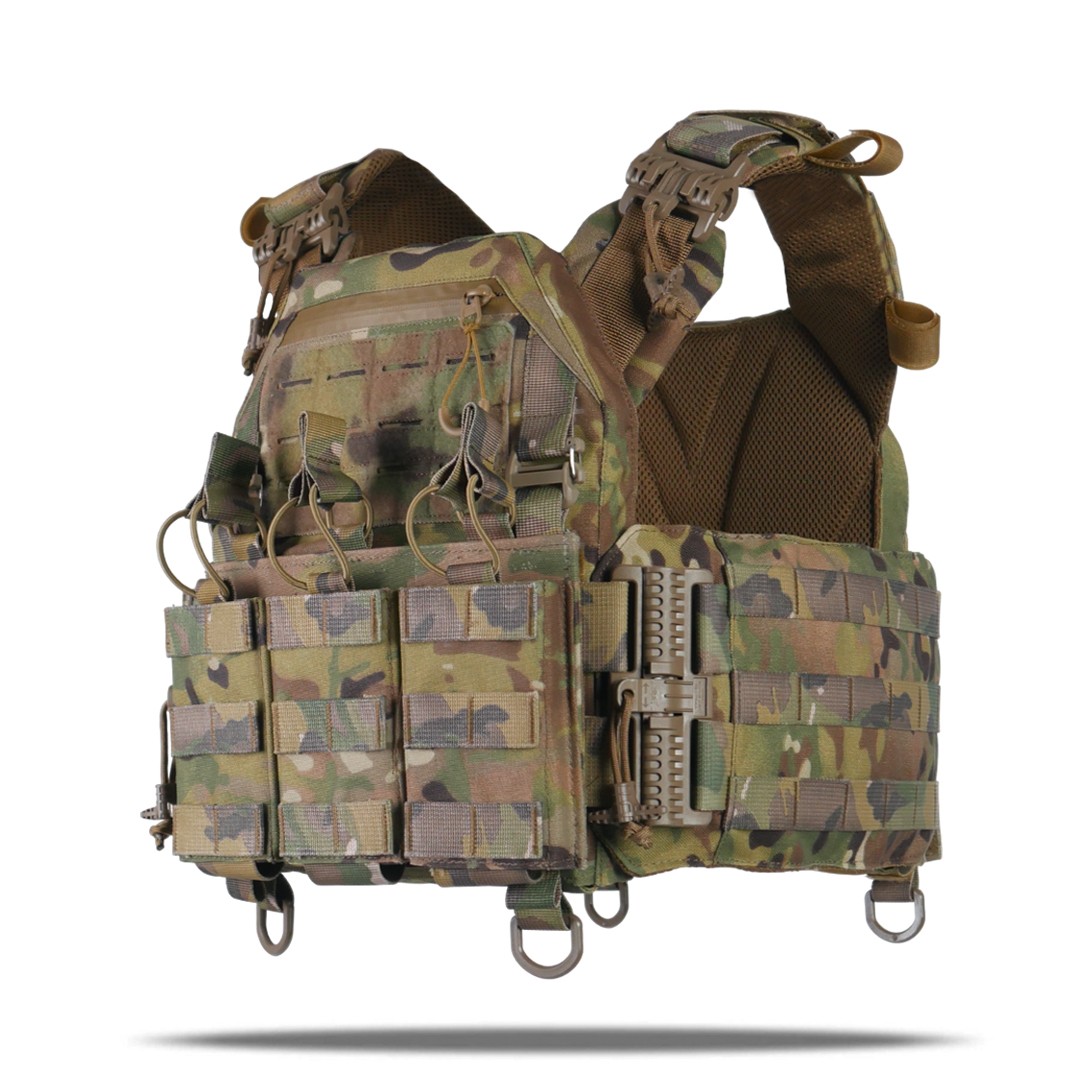Плитоноска оснащена: Демпферними вставками всередині плитоноски обшиті 3D-сіткою завтовшки 3 мм, що забезпечує правильну циркуляцію повітря та амортизацію. Плечові лямки з демпферами забезпечують, що забезпечують зручне носіння, мають систему регулювання по довжині і стропи Molle для додаткового спорядження (наприклад, турнікет або рацію). Камербанди з м'якими демпферами для гнучкості та вентиляції, що забезпечують комфортне носіння та можливість швидкого регулювання за розміром. Вони також мають кишені для балістичних пакетів.