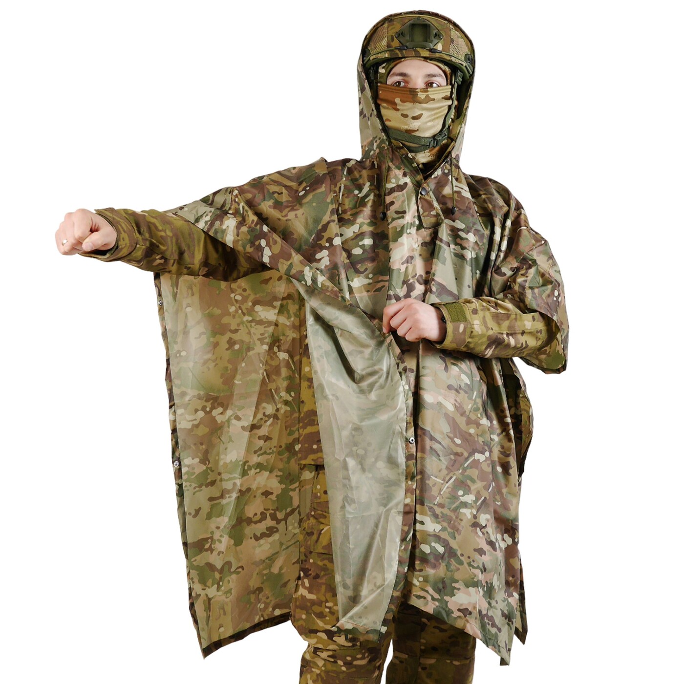 Забарвлення Multicam підходить для маскування в природному середовищі, що робить це пончо ідеальним вибором для мисливських потреб