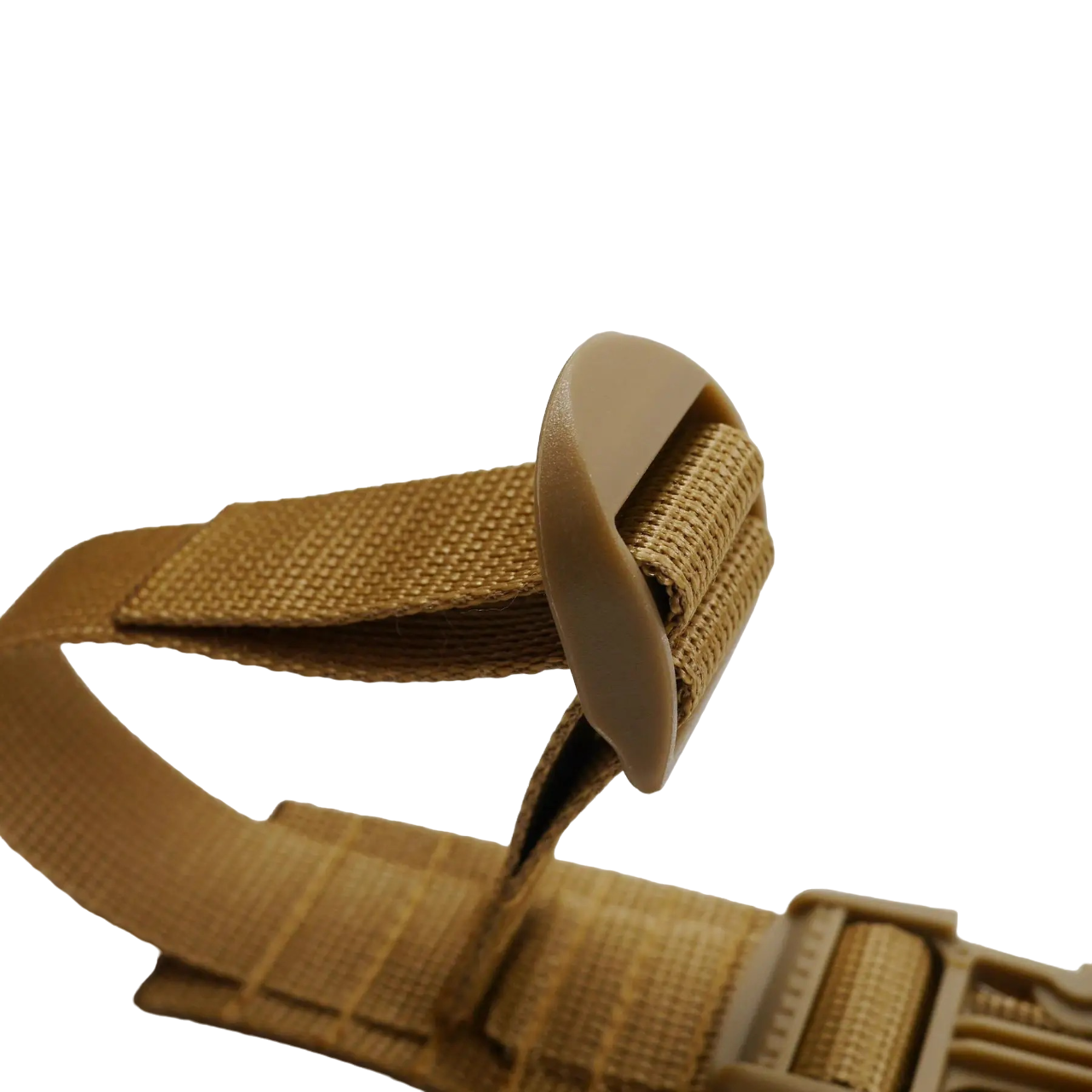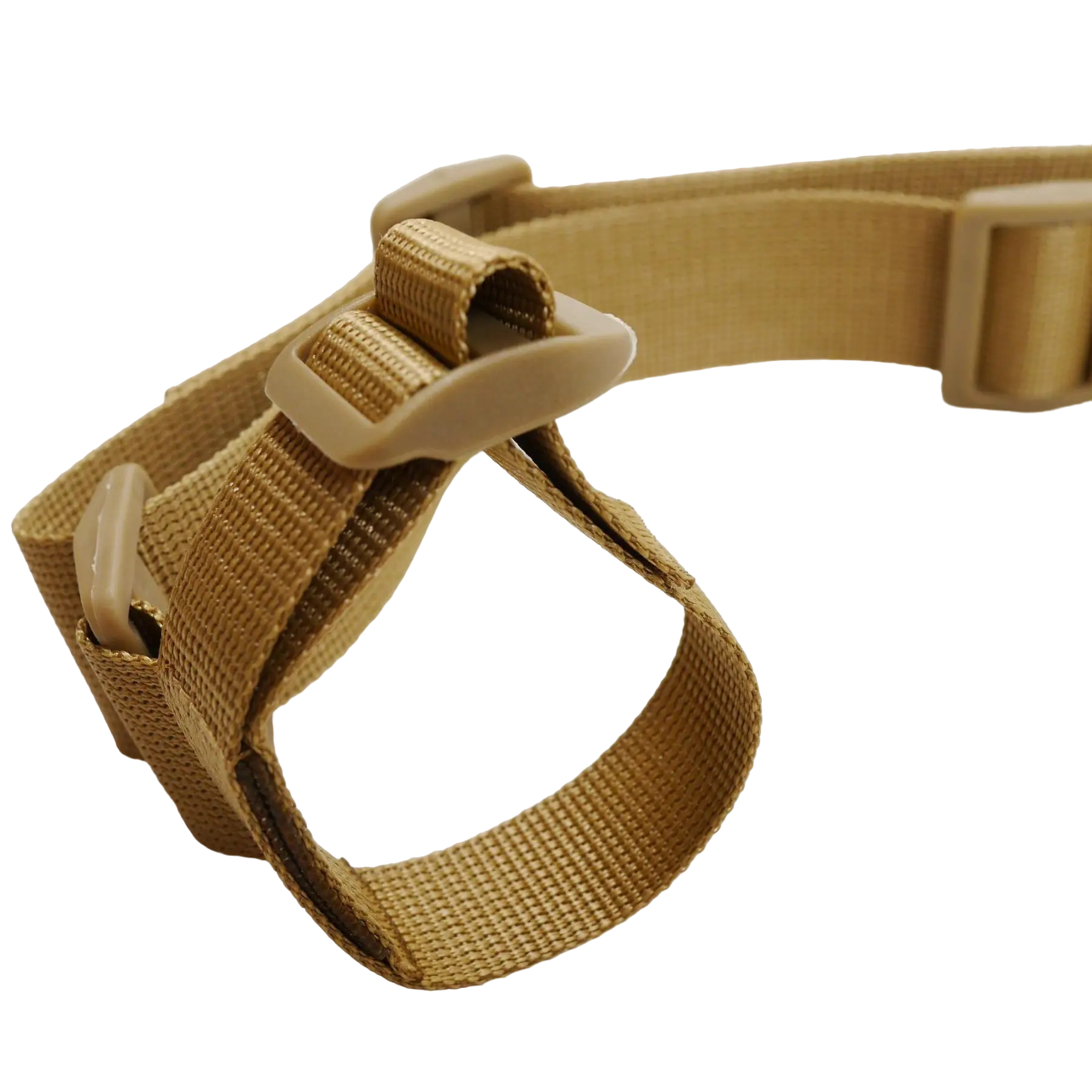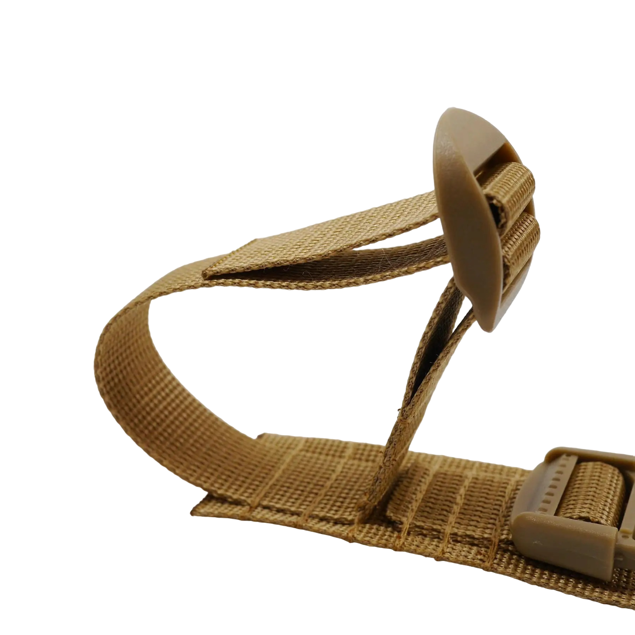 • Кріплення: Ремінь кріпиться до зброї за допомогою перетяжок, що виключають демаскуючий брязкіт і дзвін, на відміну від металевих карабінів.