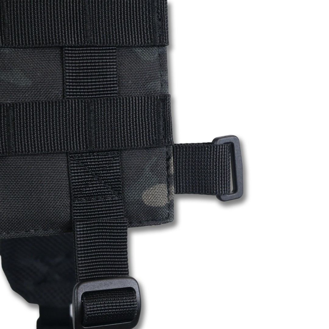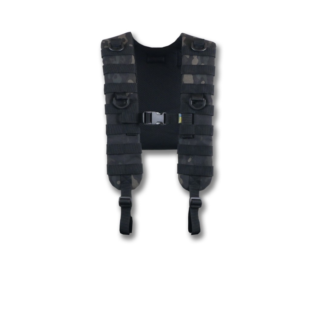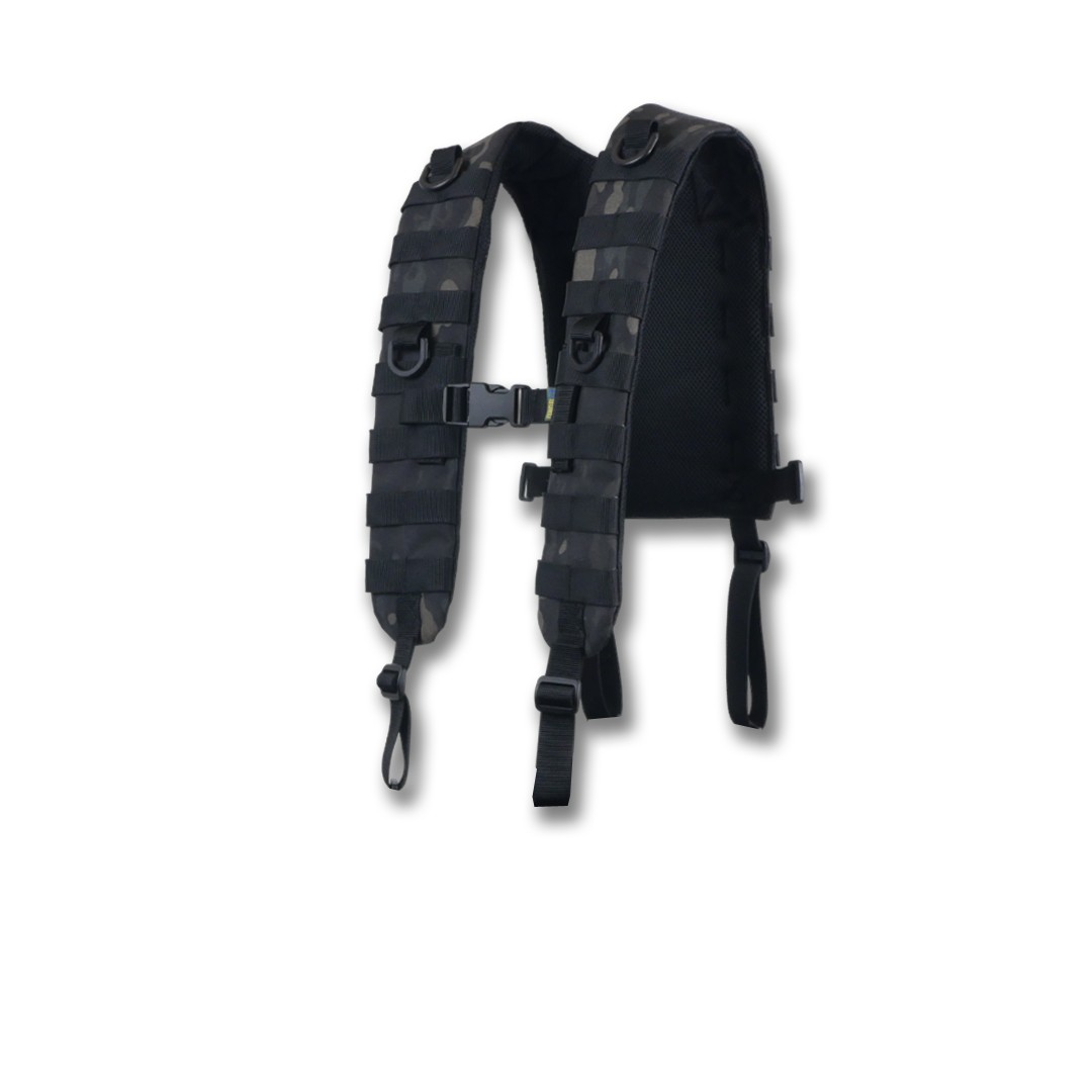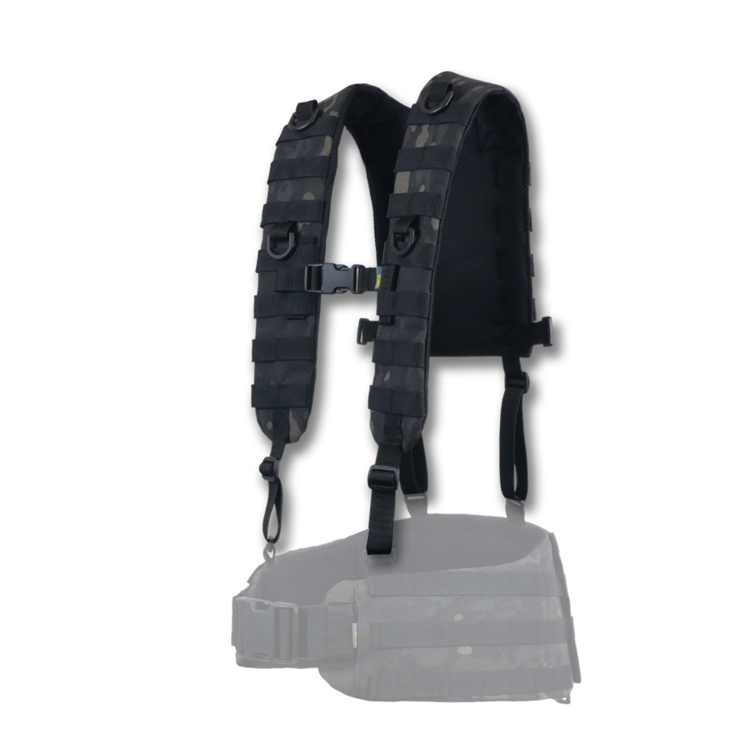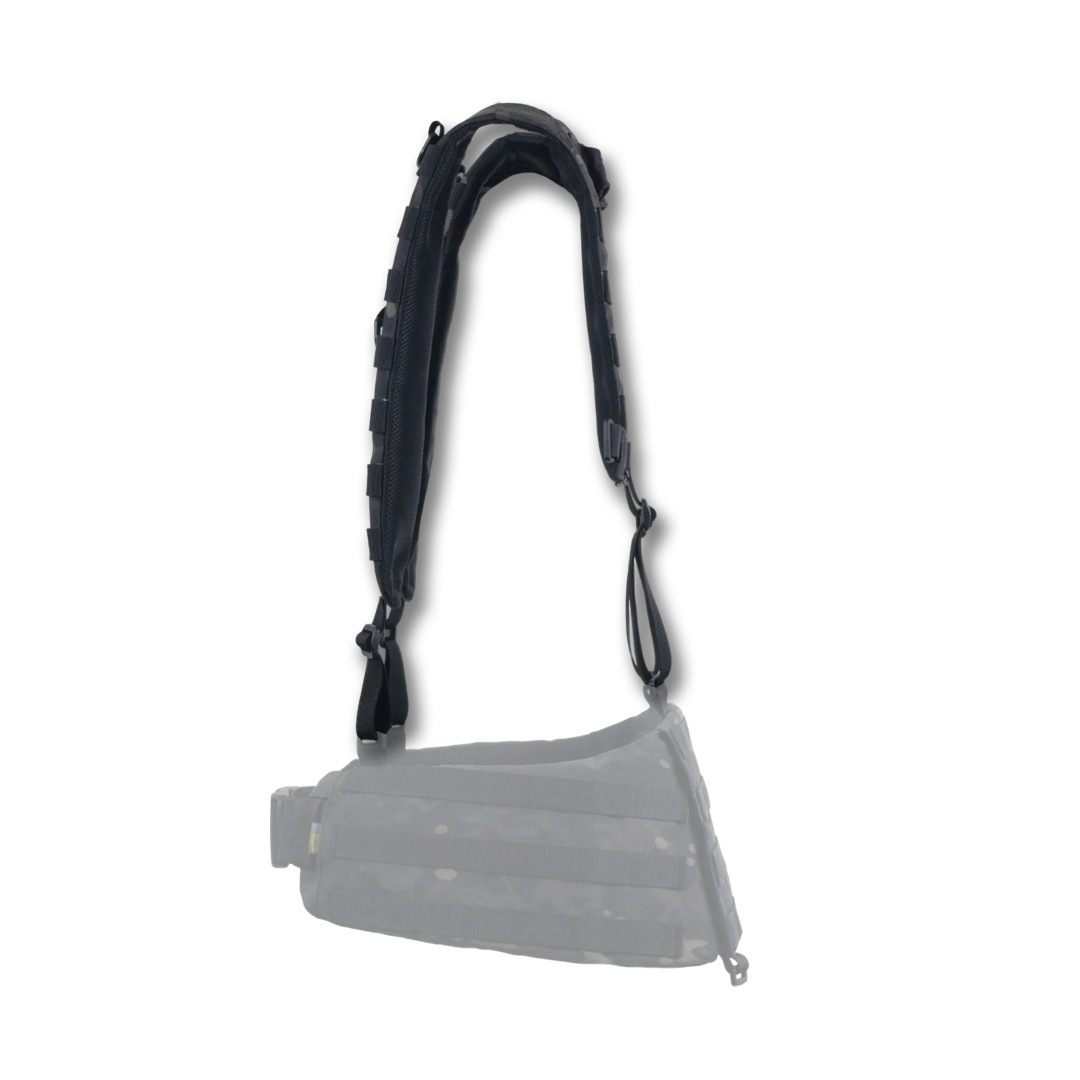 Плечові лямки з додатковими кріпленнями системи MOLLE на спині для фіксації тактичних поясних розвантажувальних систем. Конструкція забезпечує комфорт та функціональність під час використання.