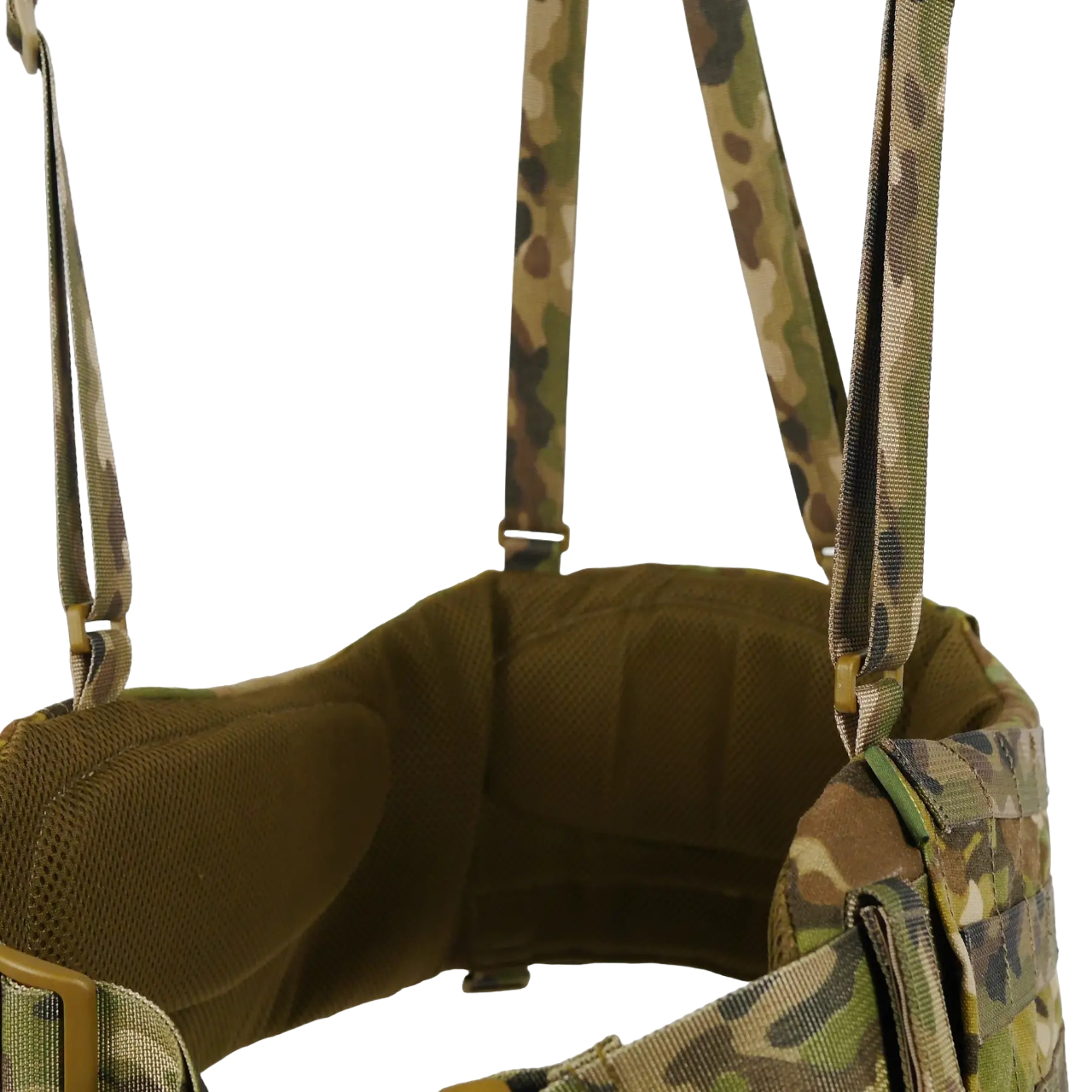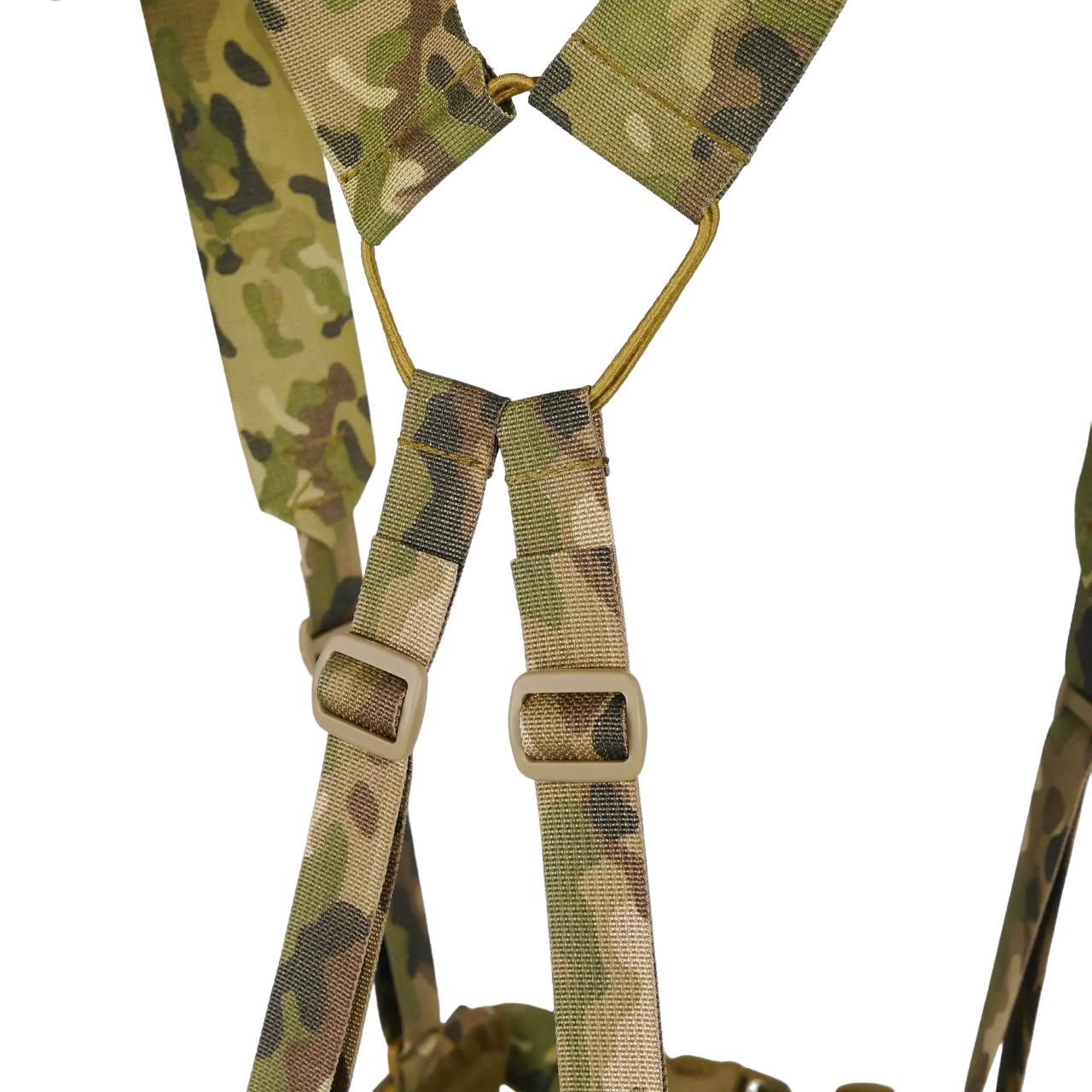 Лямки можуть бути легко закріплені на будь-якому тактичному поясі з відповідними фіксаторами, що робить їх універсальними для різних видів військового спорядження.