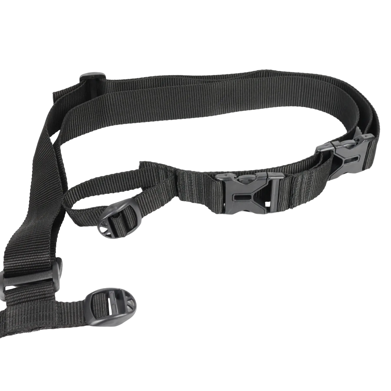 - Кріплення: Ремінь кріпиться до зброї за допомогою перетяжок, що виключають демаскуючий брязкіт і дзвін на відміну від металевих карабінів.