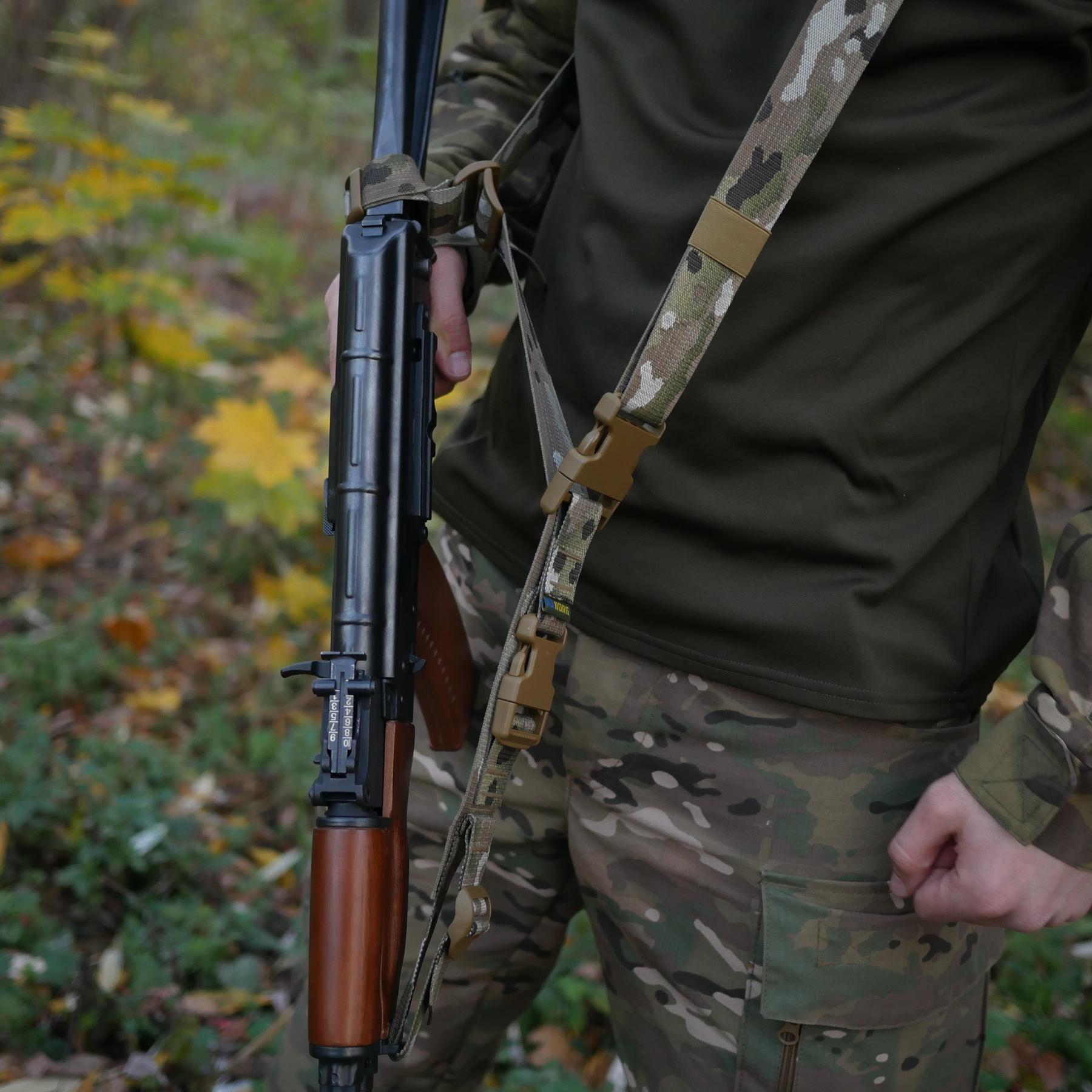 Ремінь 3-х точковий Kiborg – спрощують користування зброєю, дозволяючи швидко та ефективно її переносити та використовувати в бойових умовах.