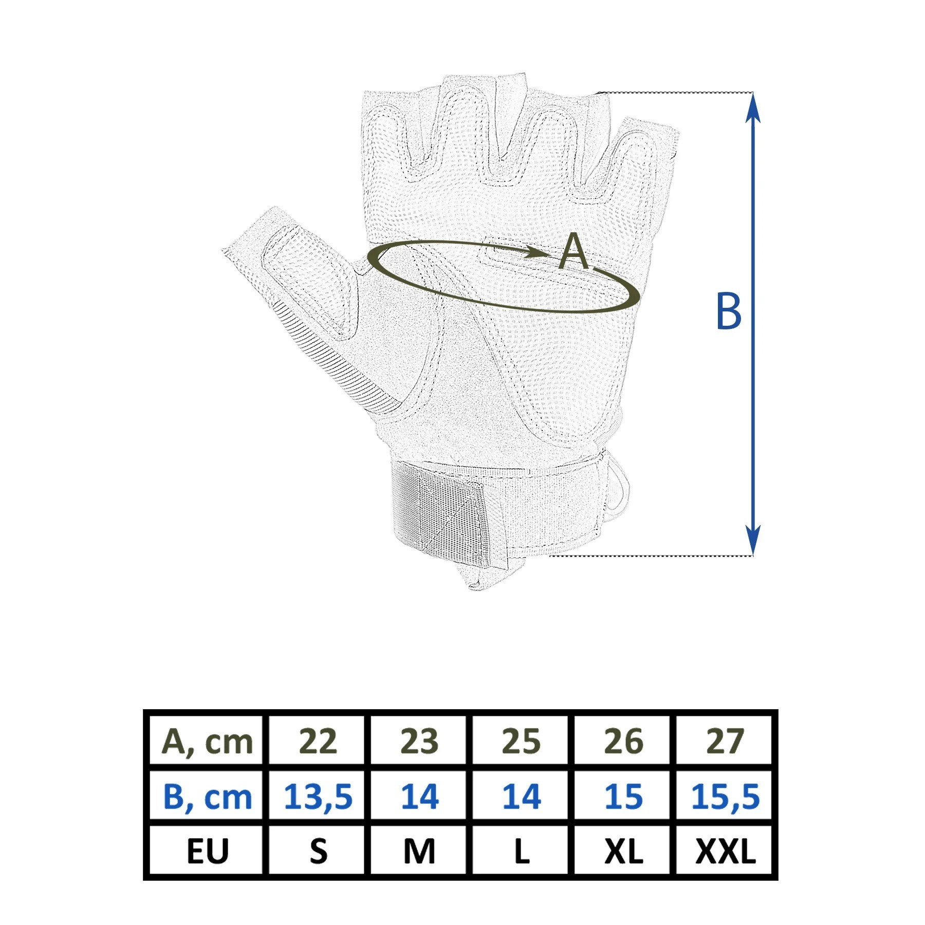 - XL — обхват долоні 26 см