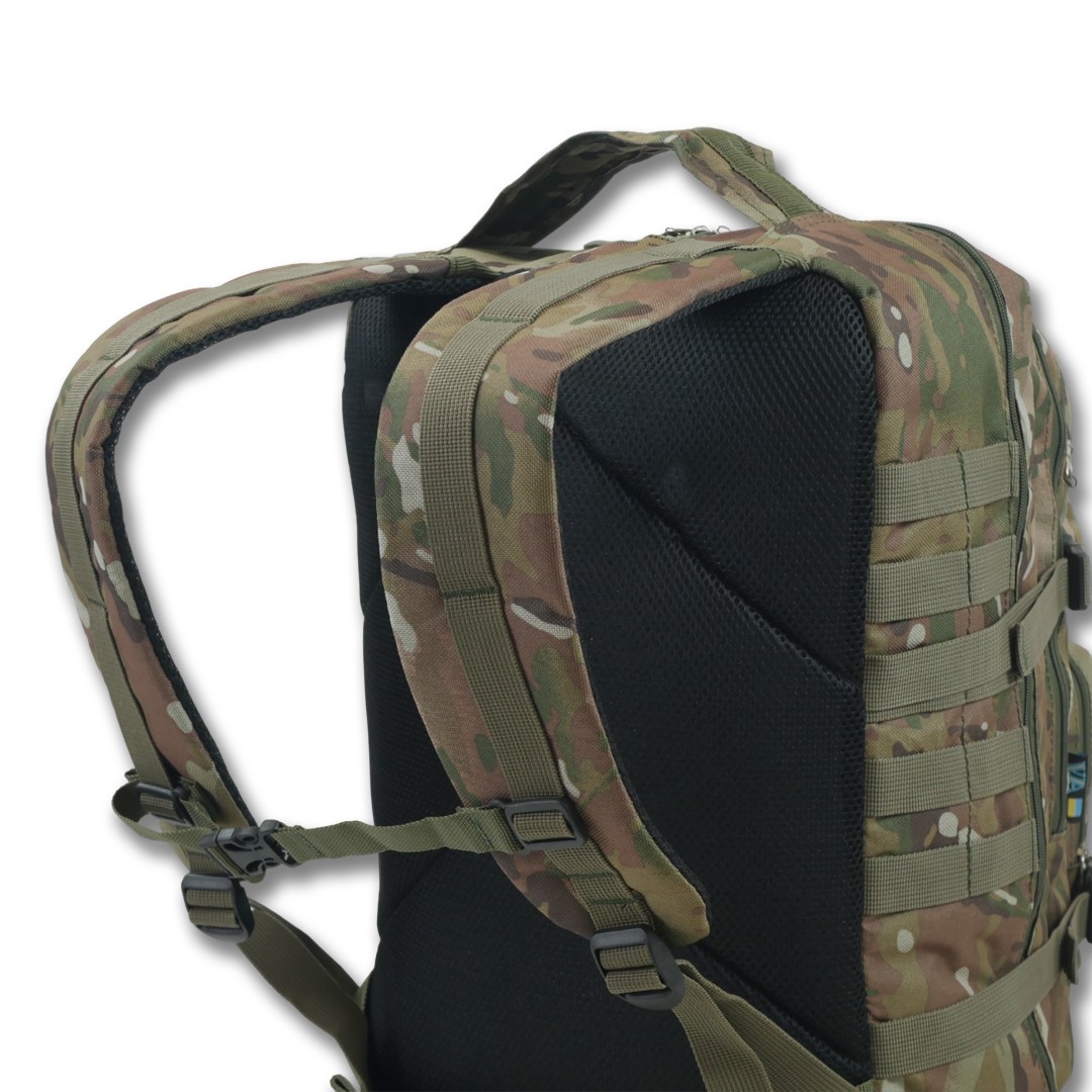 Тактичний рюкзак ємністю 40 л, підходить для повсякденного використання, дял військових та триденних походів у польових умовах. Він виготовлений з міцного матеріалу, стійкого до розривів і стирання, що гарантує довговічність.