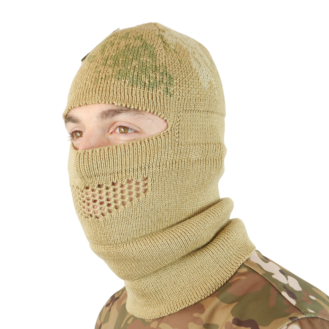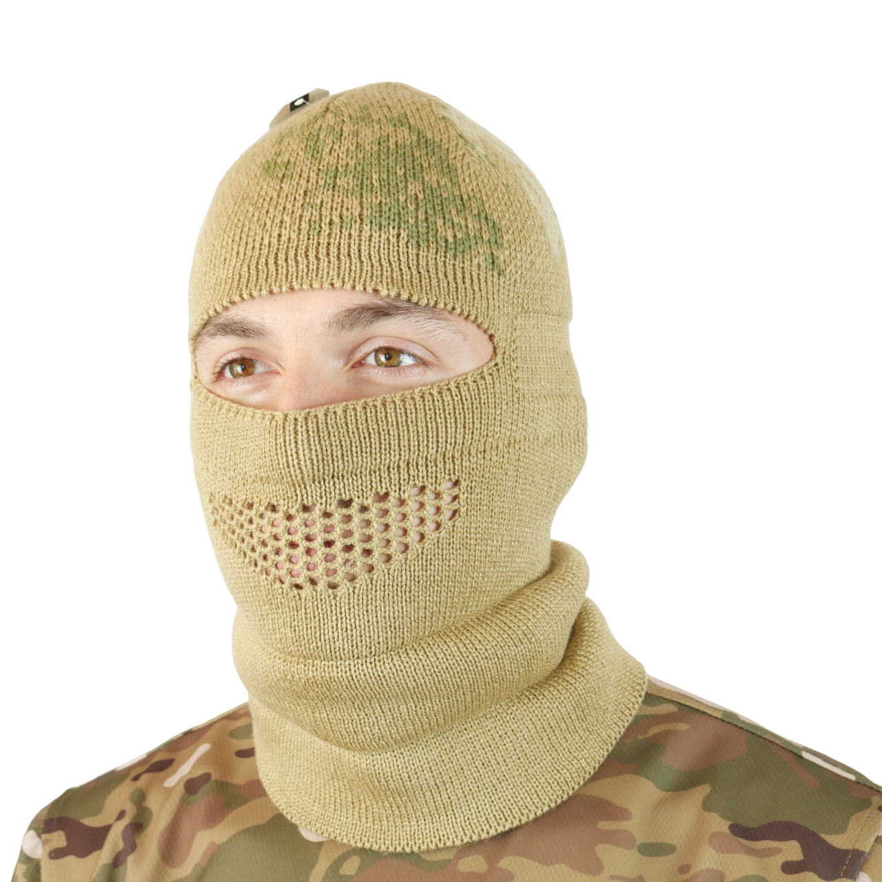 Балаклава-шапка в'язана захистить вашу голову та обличчя від вітру та холоду, може використовуватись як підшоломник, також виконує функцію маскування.