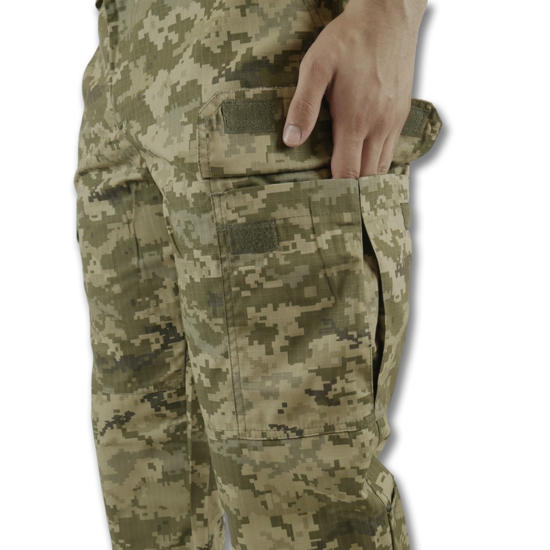 - Матеріал: бавовняна тканина ріп-стоп – високоміцна, армована структура плетіння.