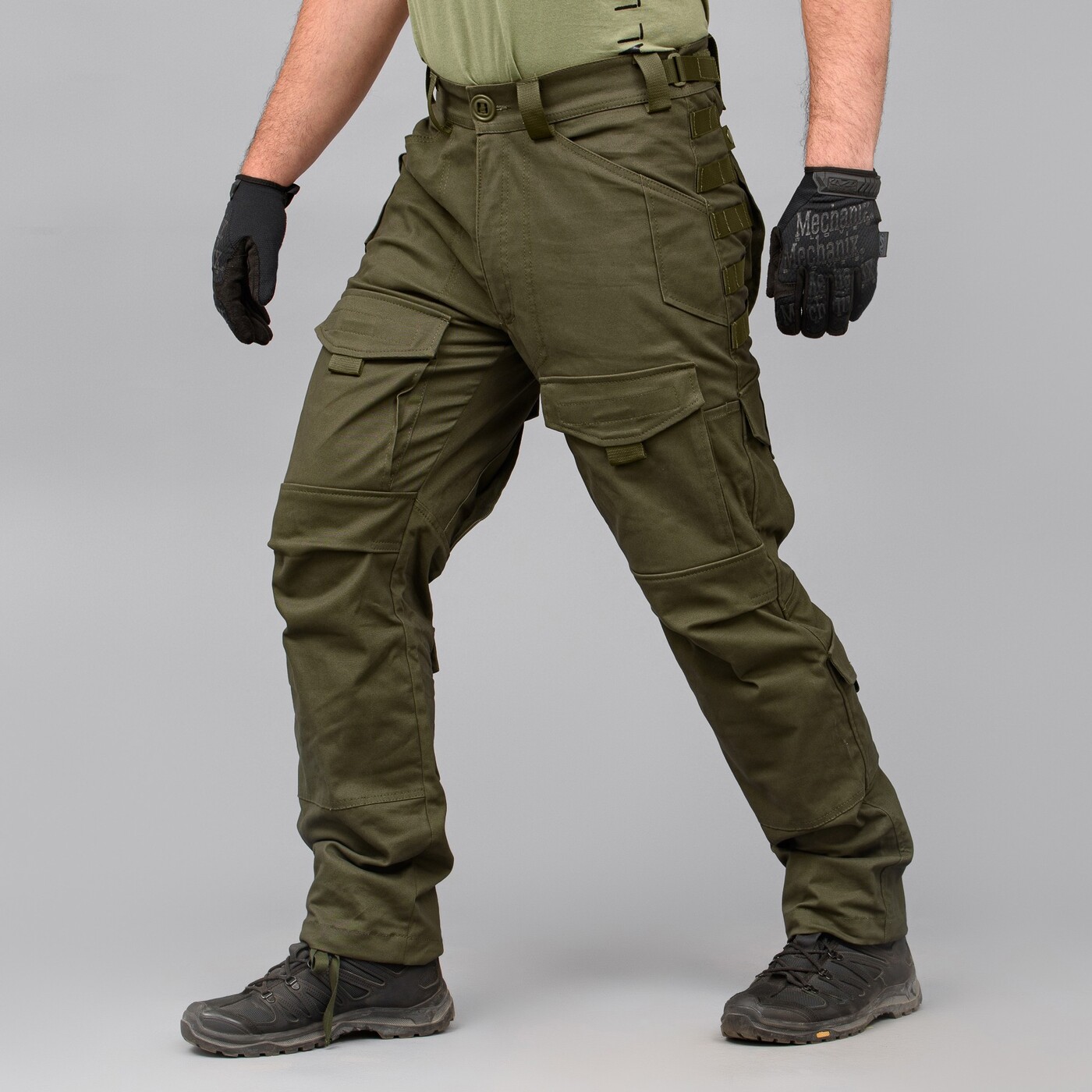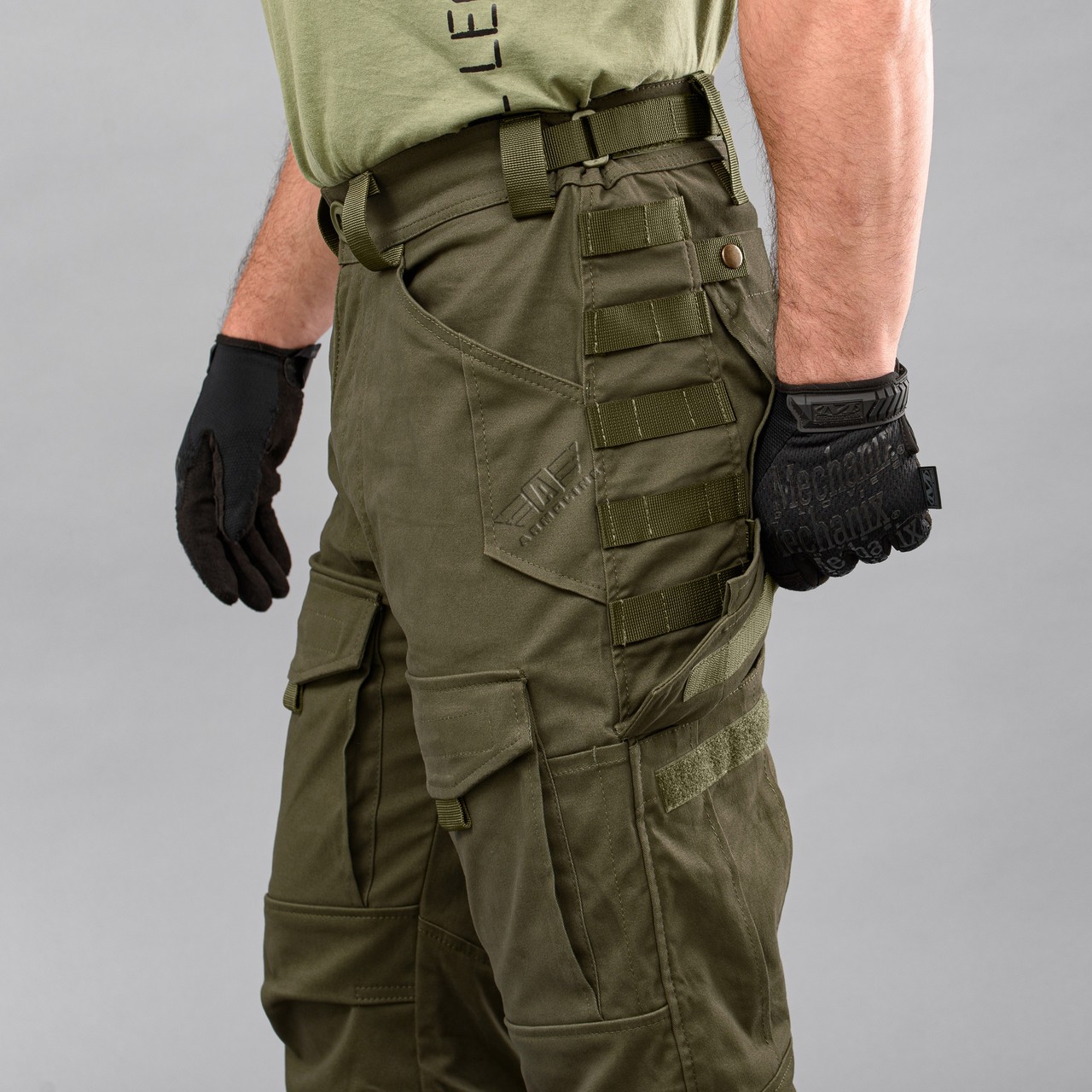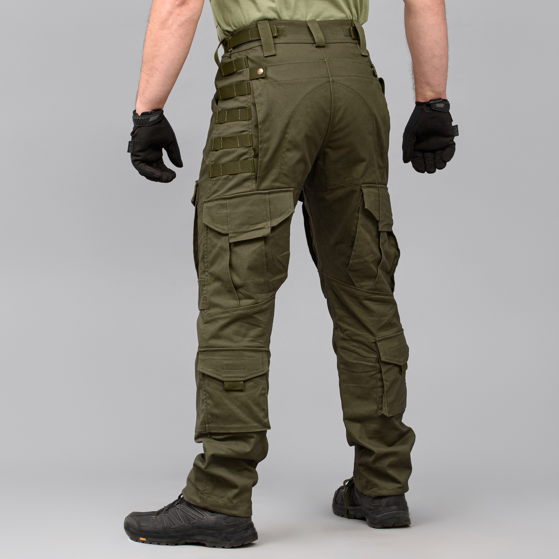 - На брюках розташовано 11 кишень – 2 врізні (брючних), 2 великих задніх, 5 з клапанами на "велкро", 1 (під магазин) з клапаном з стропи,