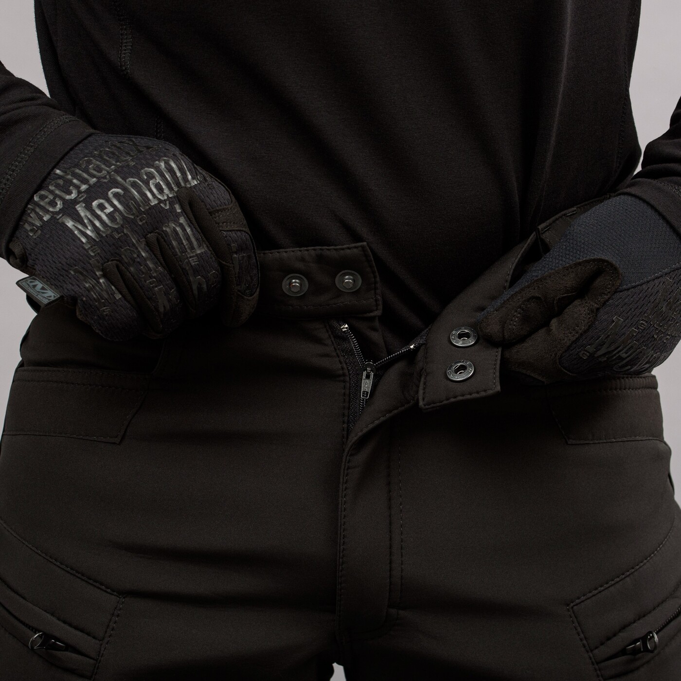 - Штани застібаються на блискавку і дві кнопки.