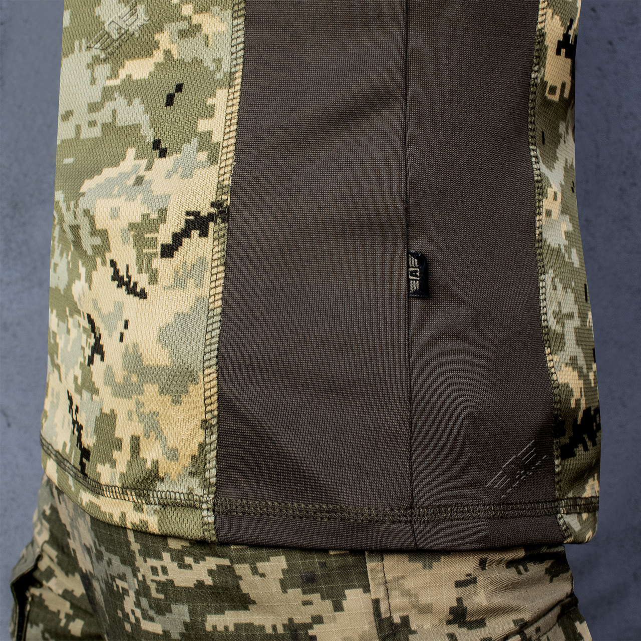 • У конструкції використовуються 3 види тканин, захисна тканина на плечах і рукавах – ріп-стоп, нижня тканина – спортивний трикотаж Ribana і трикотаж CoolMax.
